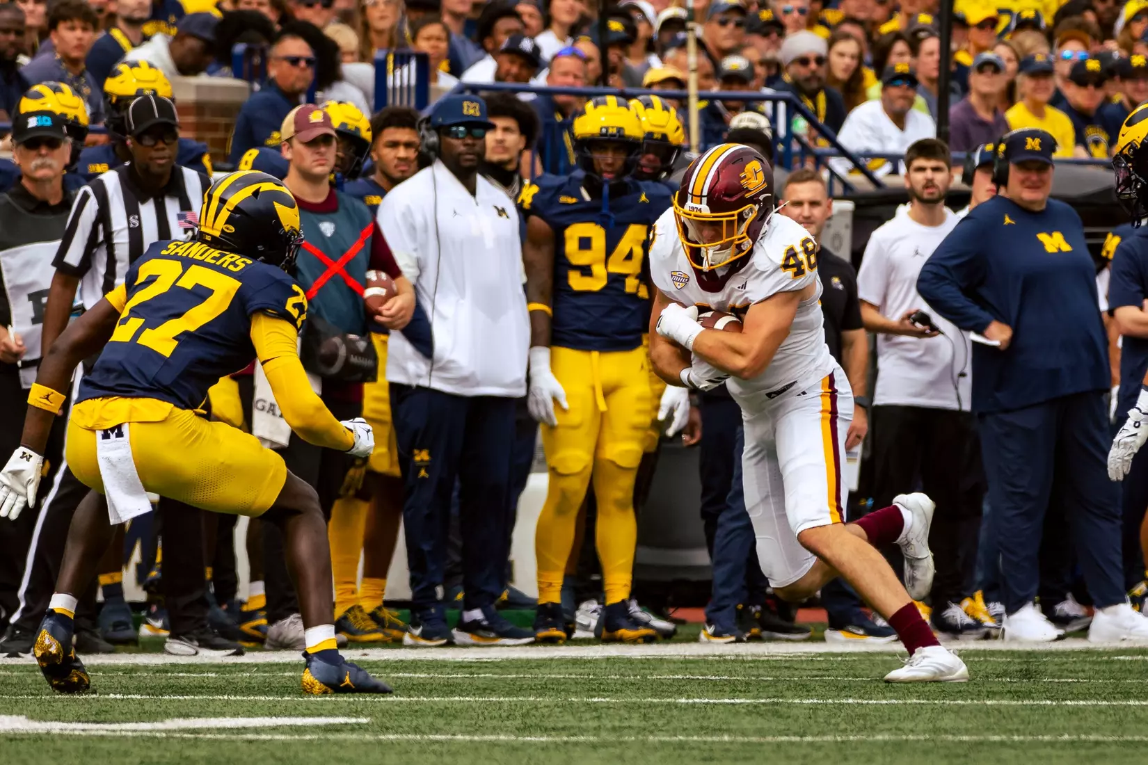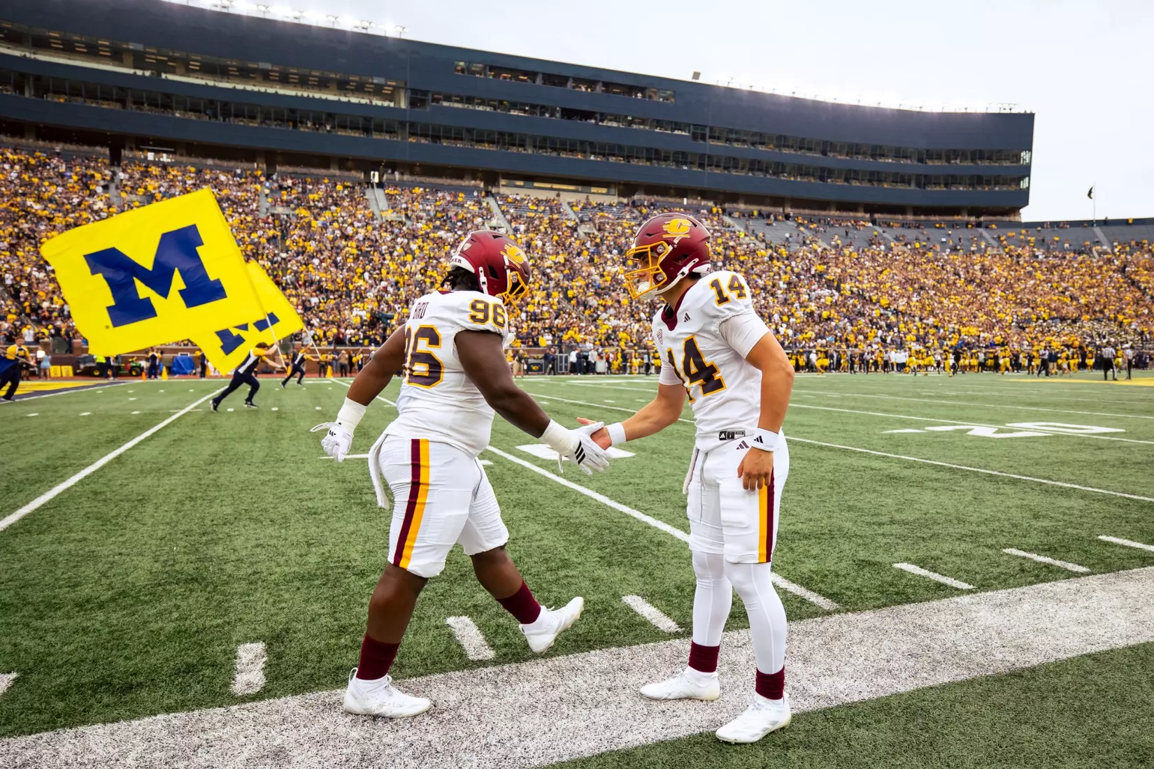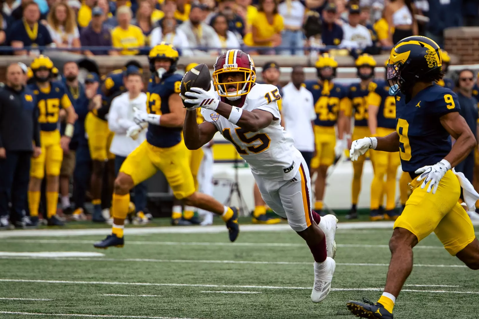 The Wolverines scored touchdowns on nine of their 12 possessions and their 616 yards tied for the 12th most by a Chippewa opponent.