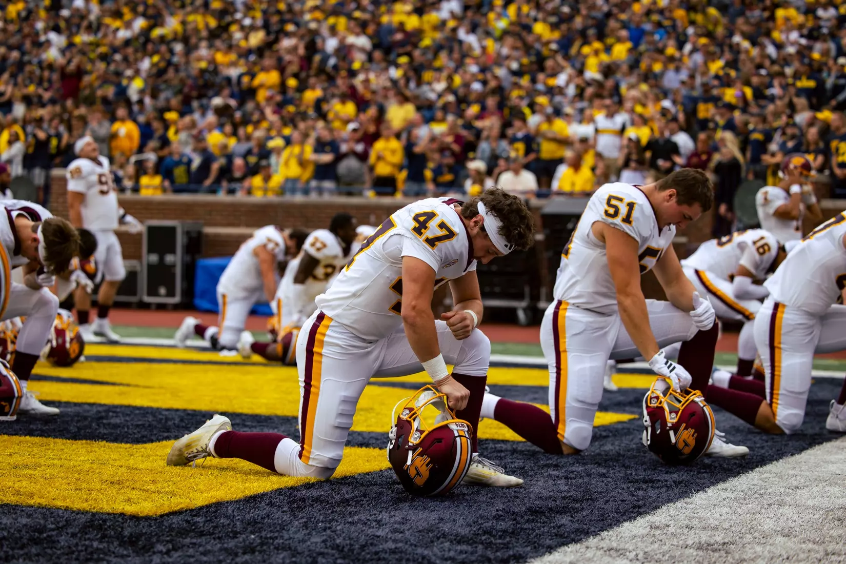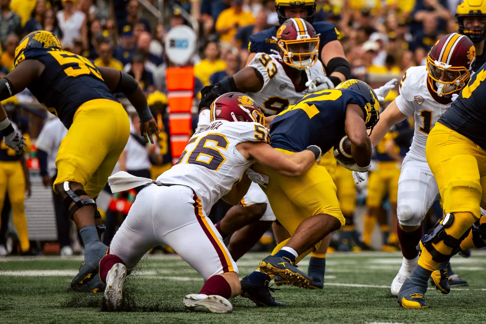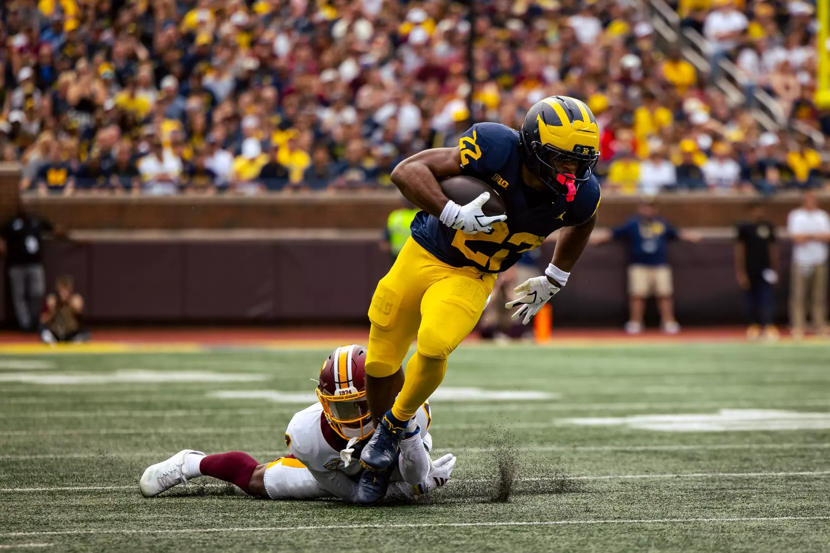 The Wolverines scored touchdowns on nine of their 12 possessions and their 616 yards tied for the 12th most by a Chippewa opponent.