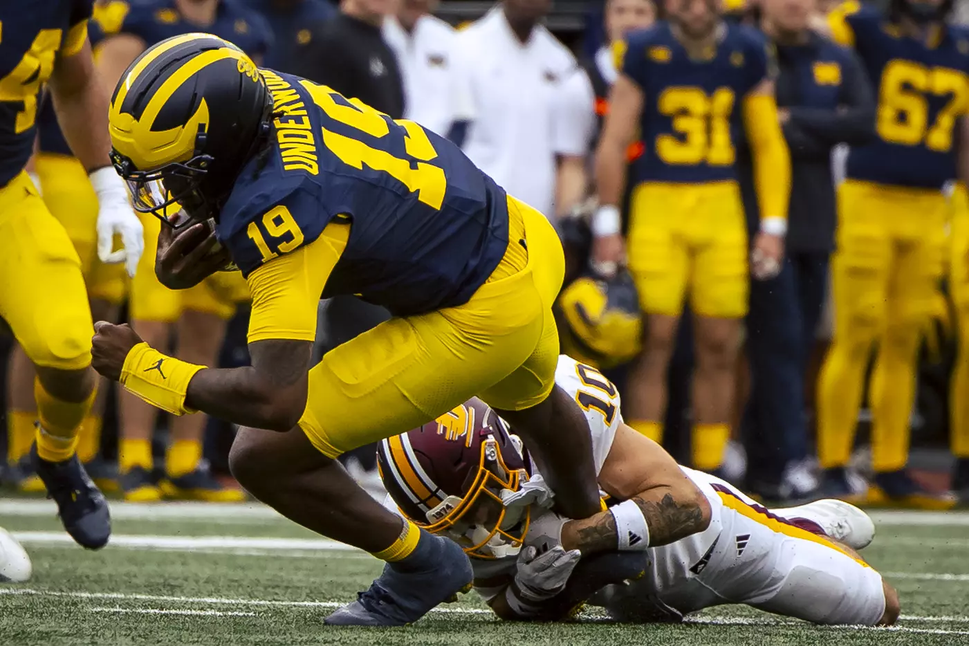 Michigan quarterback Bryce Underwood threw for 235 yards and a touchdown and ran for 114 yards and two scores.