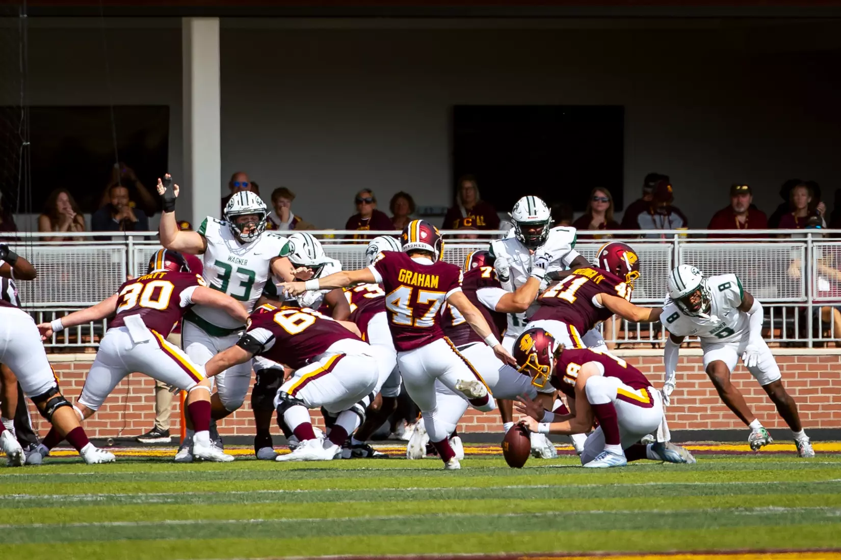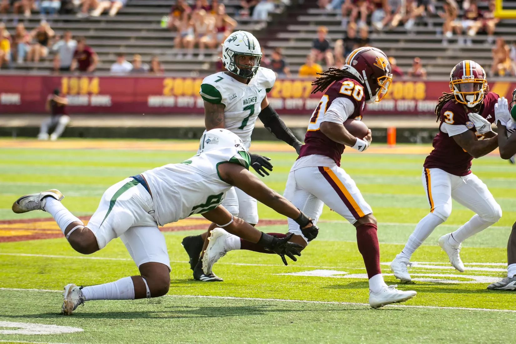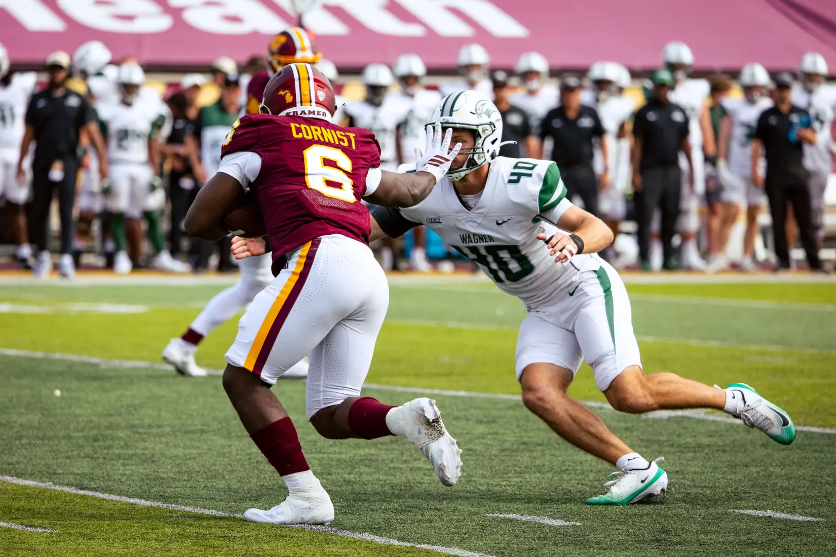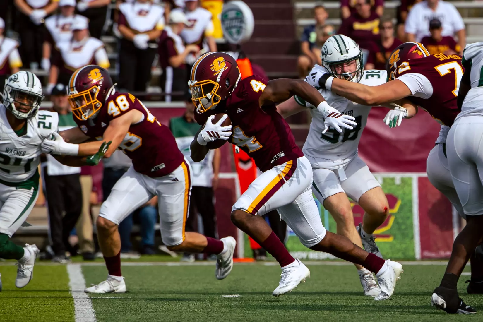 Cochran then recovered a fumble on Wagner's next possession and CMU cashed in shortly thereafter on an Angel Flores 2-yard run to extend the lead to 14-0.