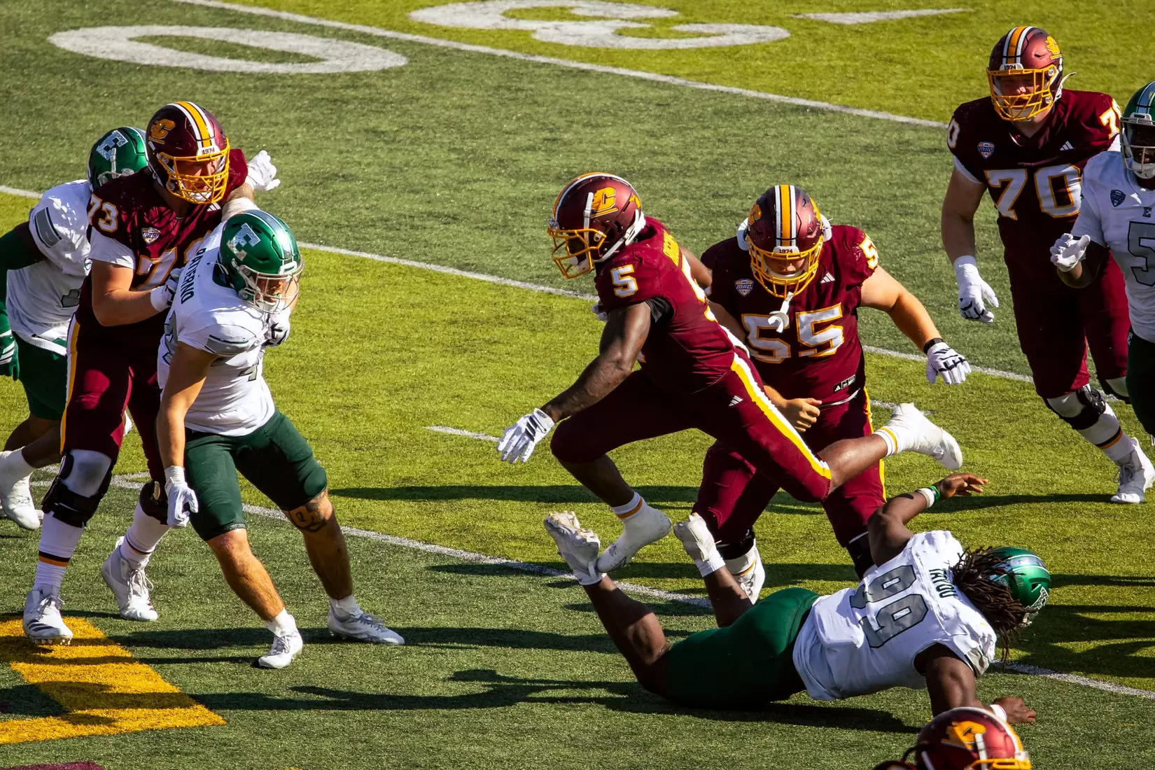 CMU ran for a season-high 305 yards and finished with 445 yards from scrimmage, its second-highest total of the season.