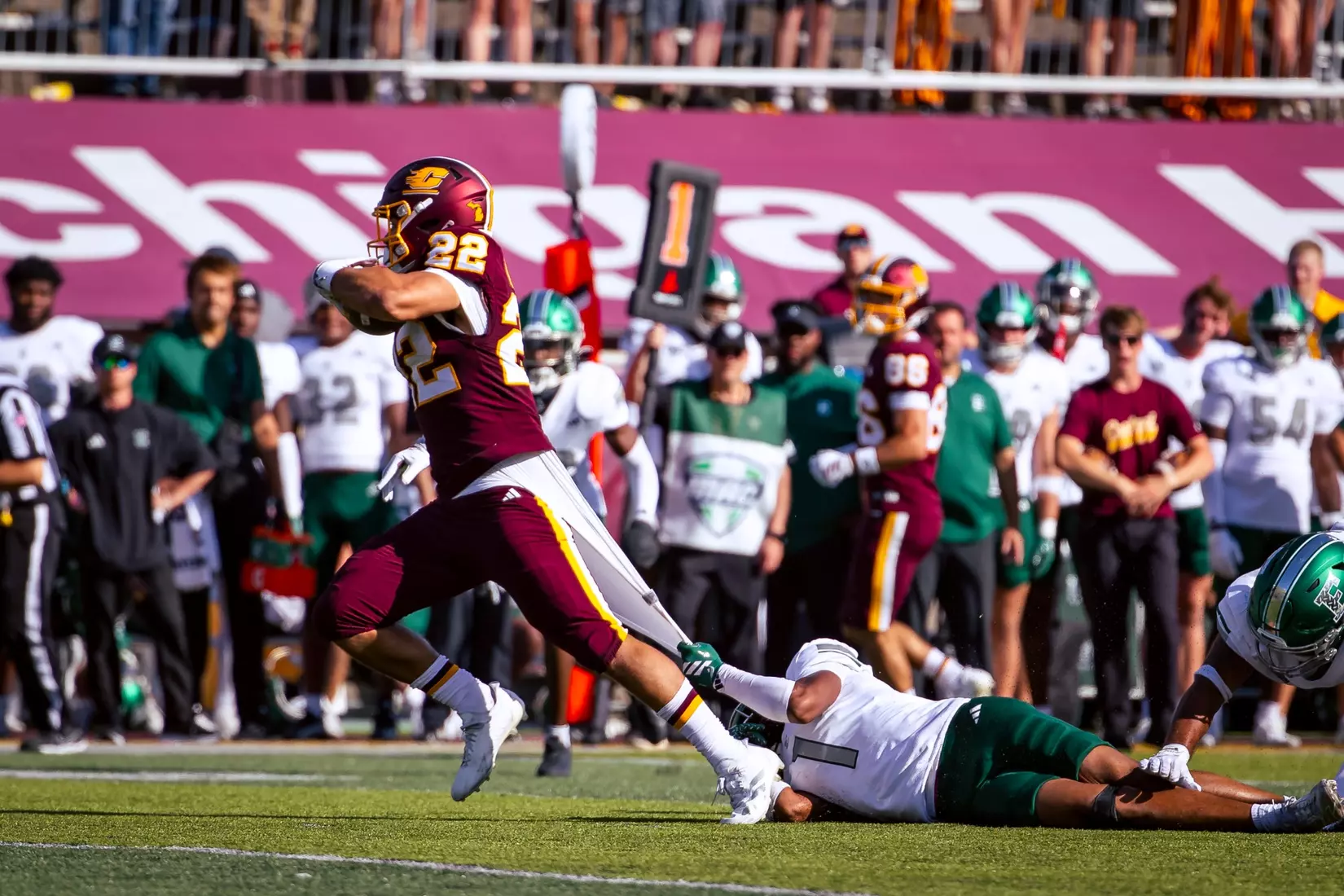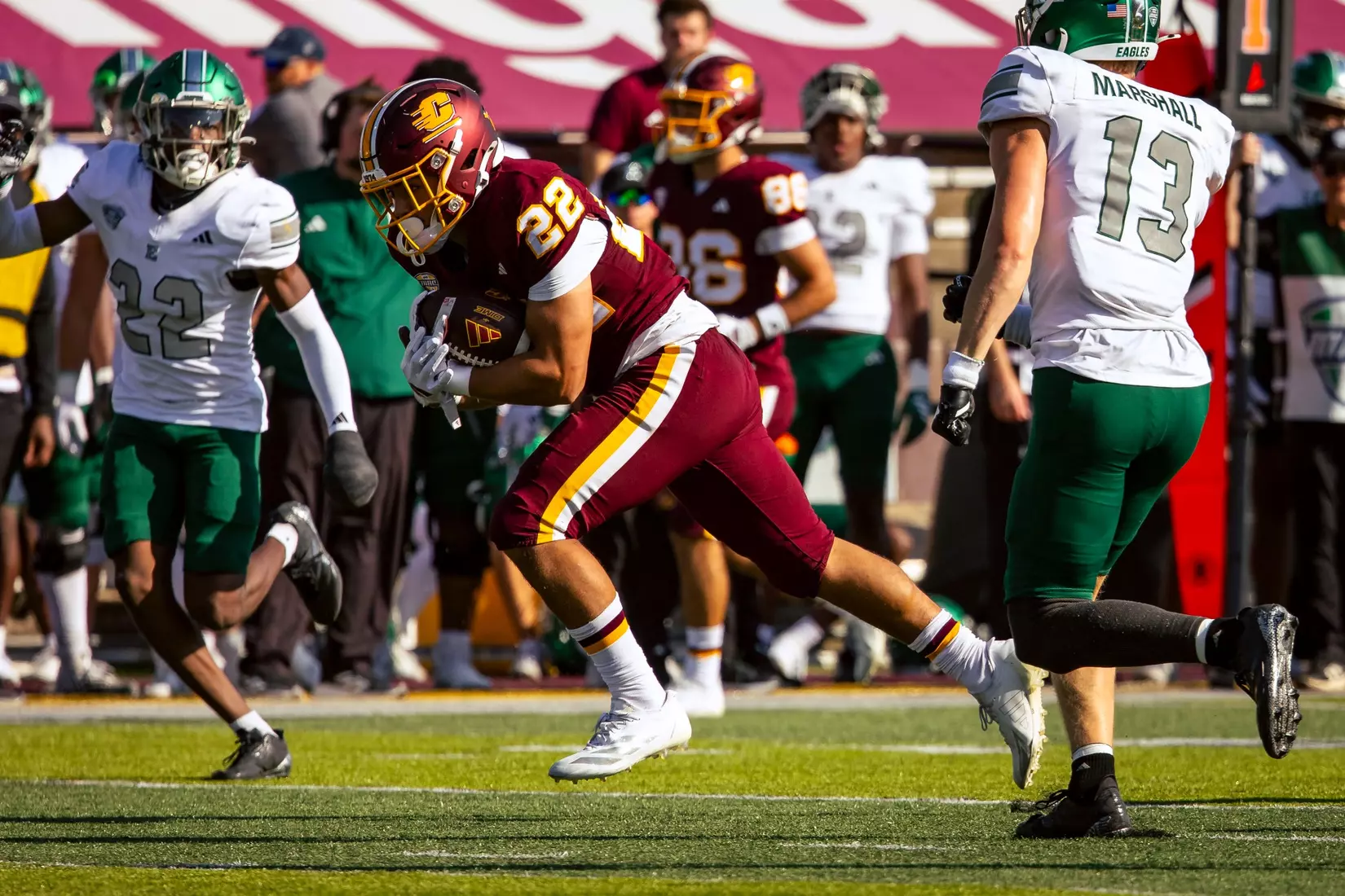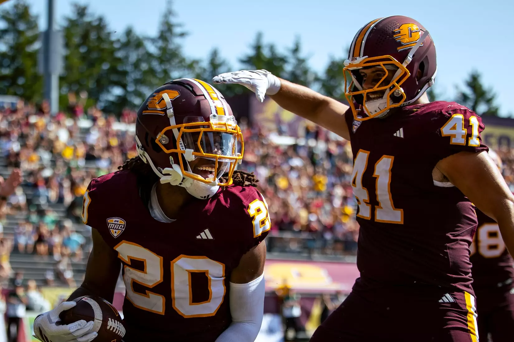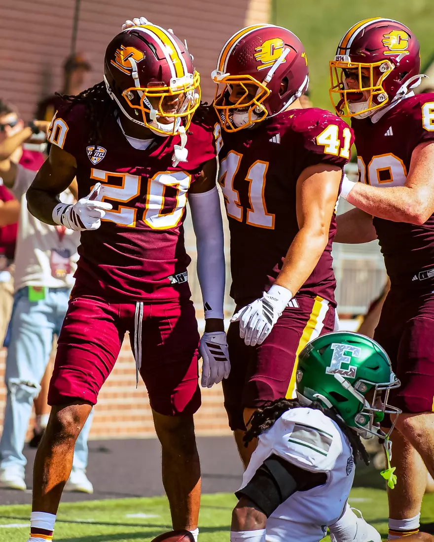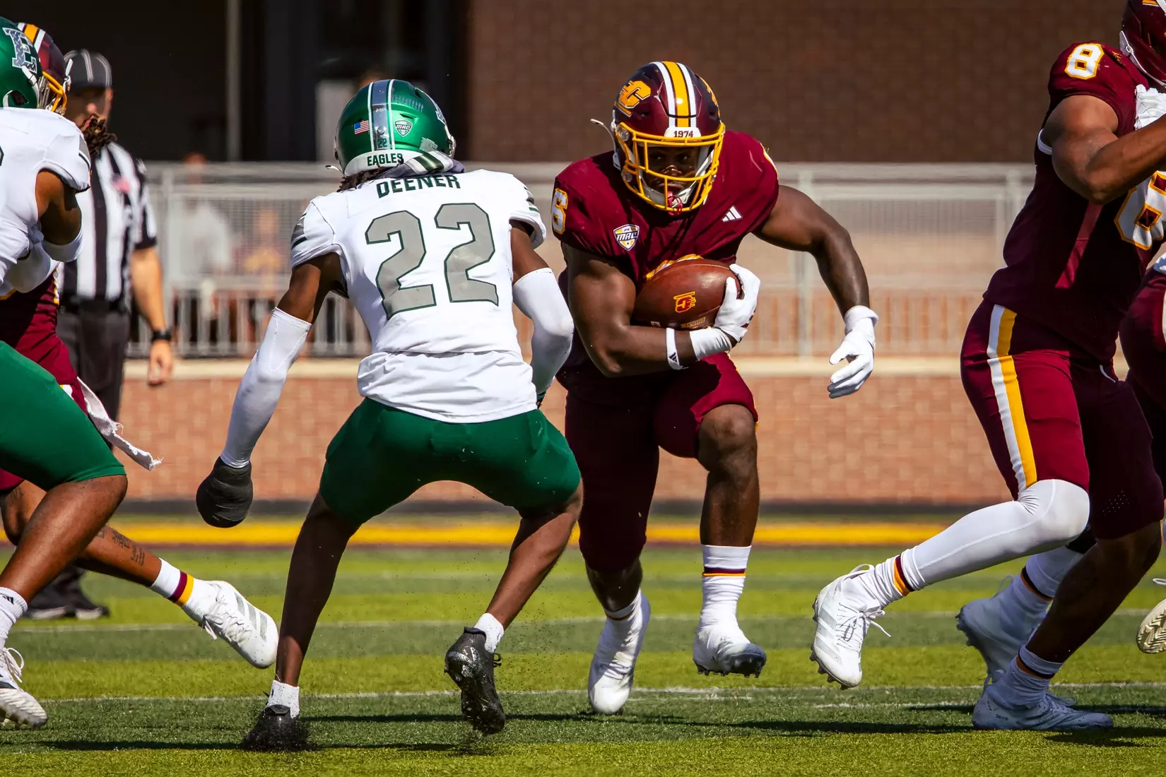 Nahree Biggins rushed for 113 yards and a touchdown, a 49-yarder in the first quarter that extended CMU's lead to 14-0. It marked the first time CMU has had two players rush for 100-plus yards in a game since Sept. 9, 2023.
