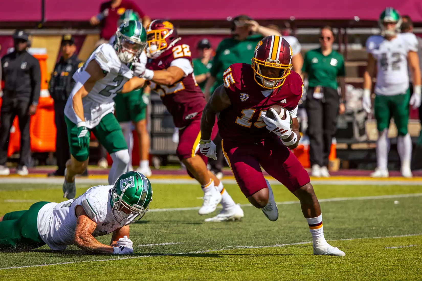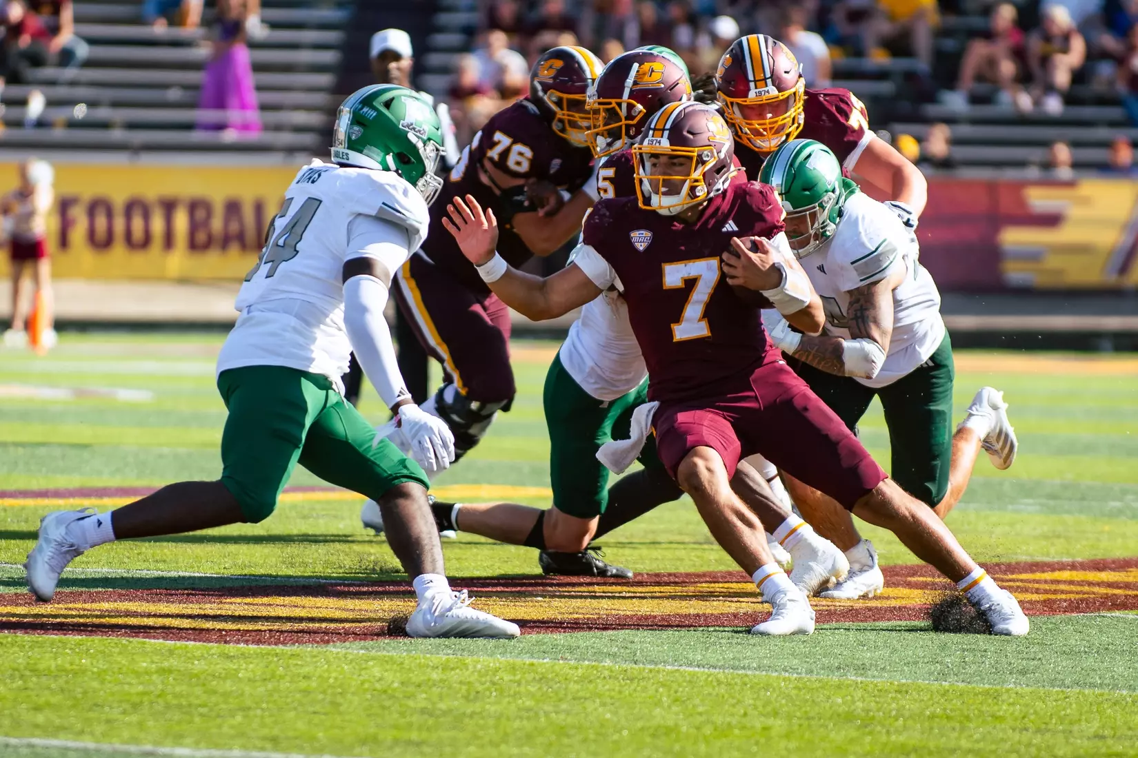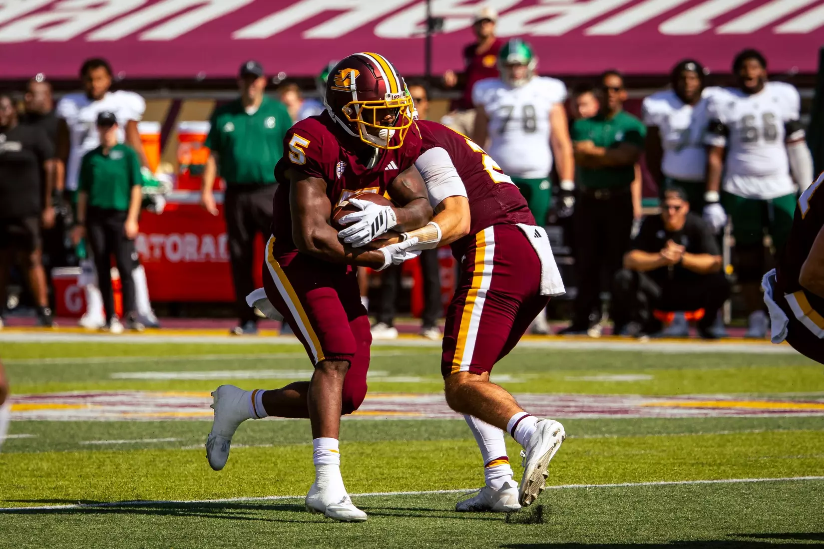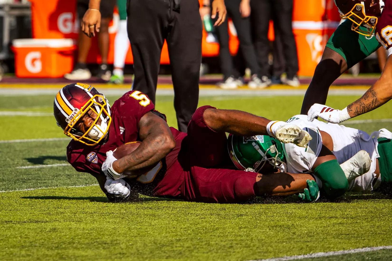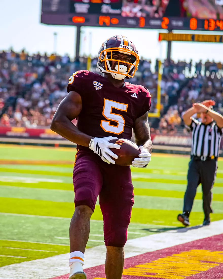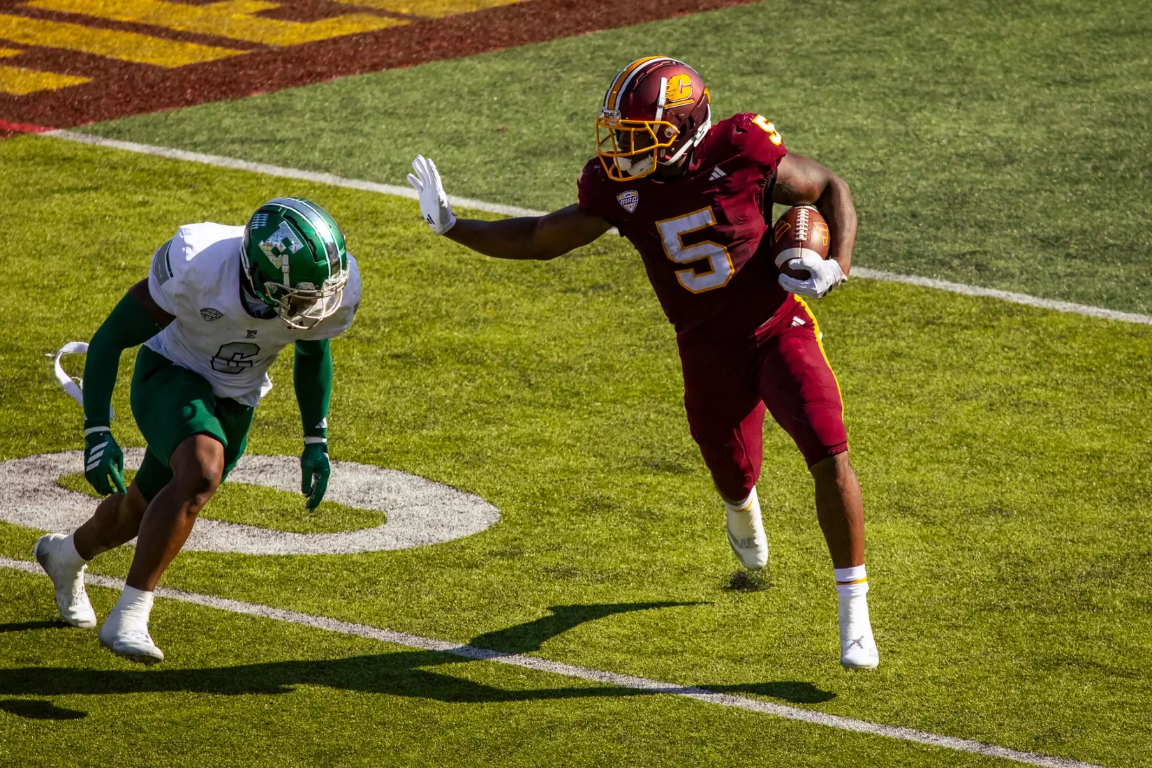 Nahree Biggins rushed for 113 yards and a touchdown, a 49-yarder in the first quarter that extended CMU's lead to 14-0. It marked the first time CMU has had two players rush for 100-plus yards in a game since Sept. 9, 2023.