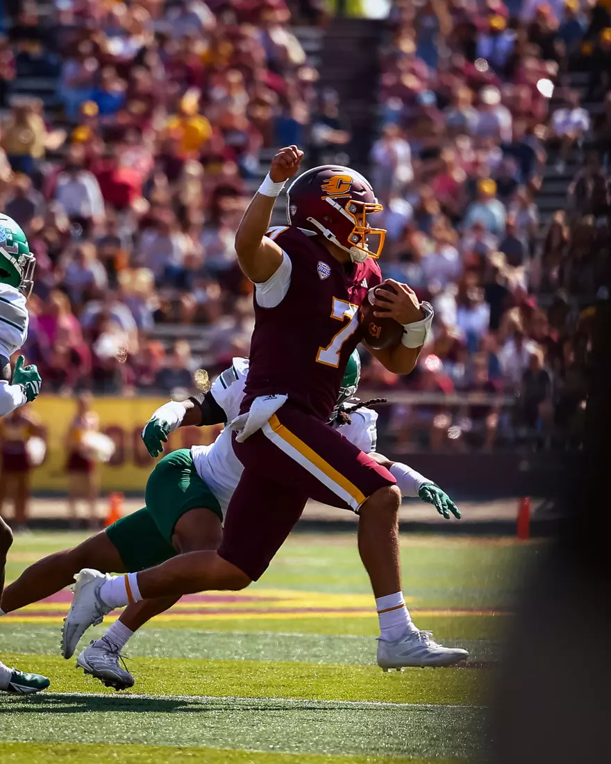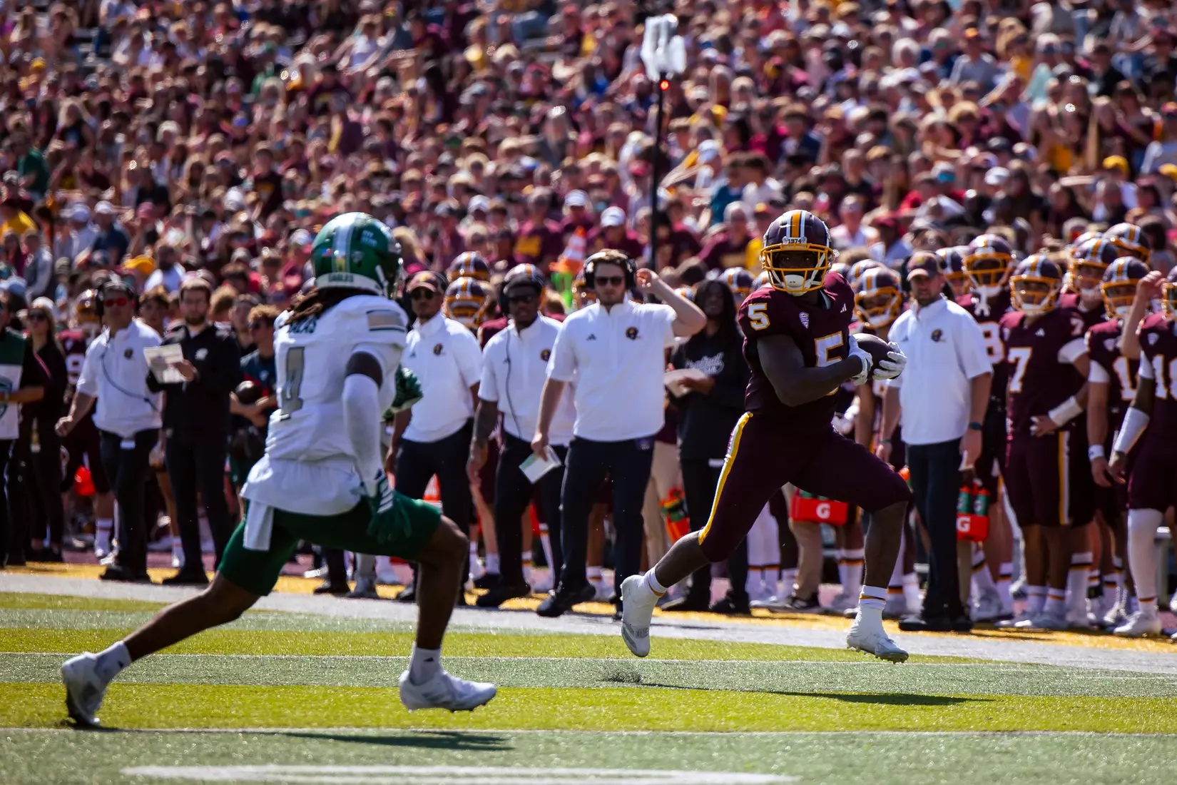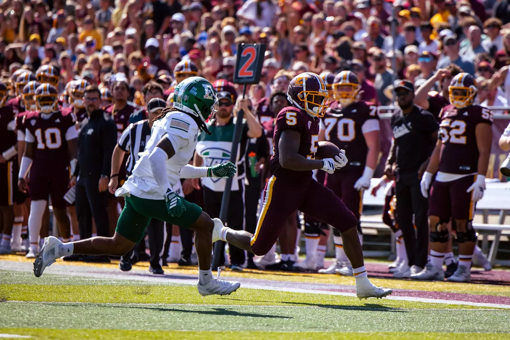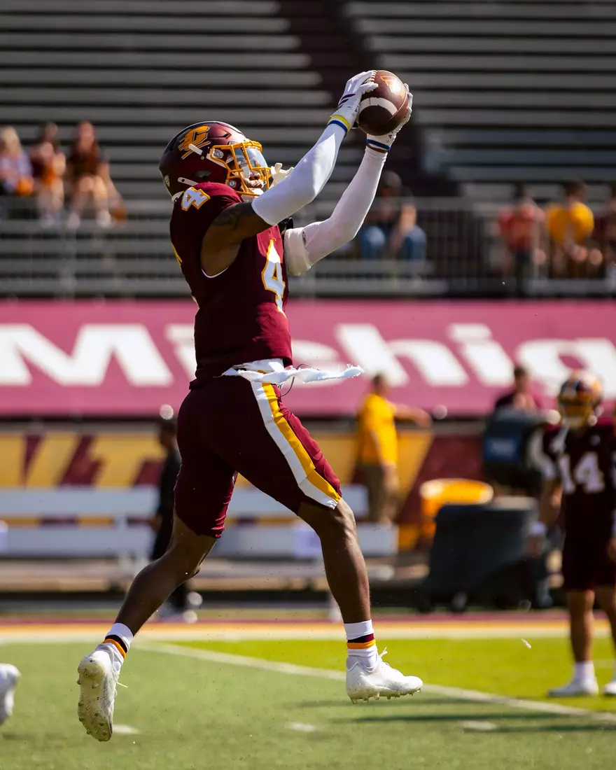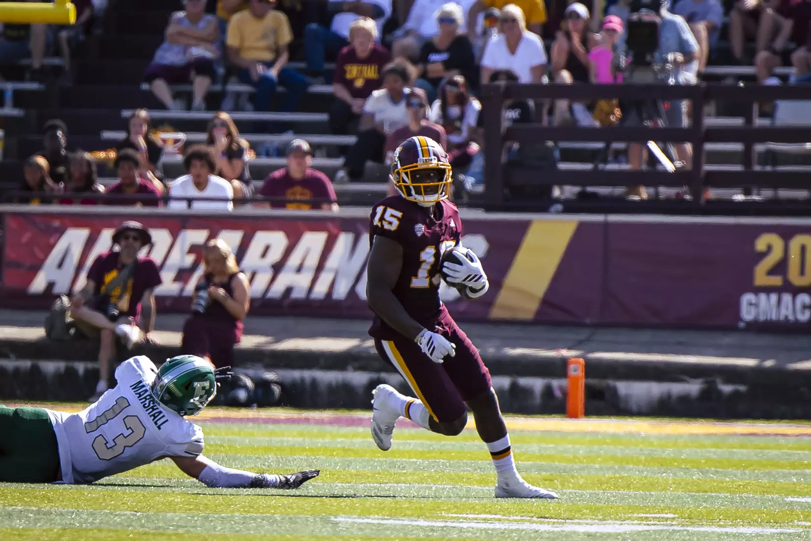 Nahree Biggins rushed for 113 yards and a touchdown, a 49-yarder in the first quarter that extended CMU's lead to 14-0. It marked the first time CMU has had two players rush for 100-plus yards in a game since Sept. 9, 2023.