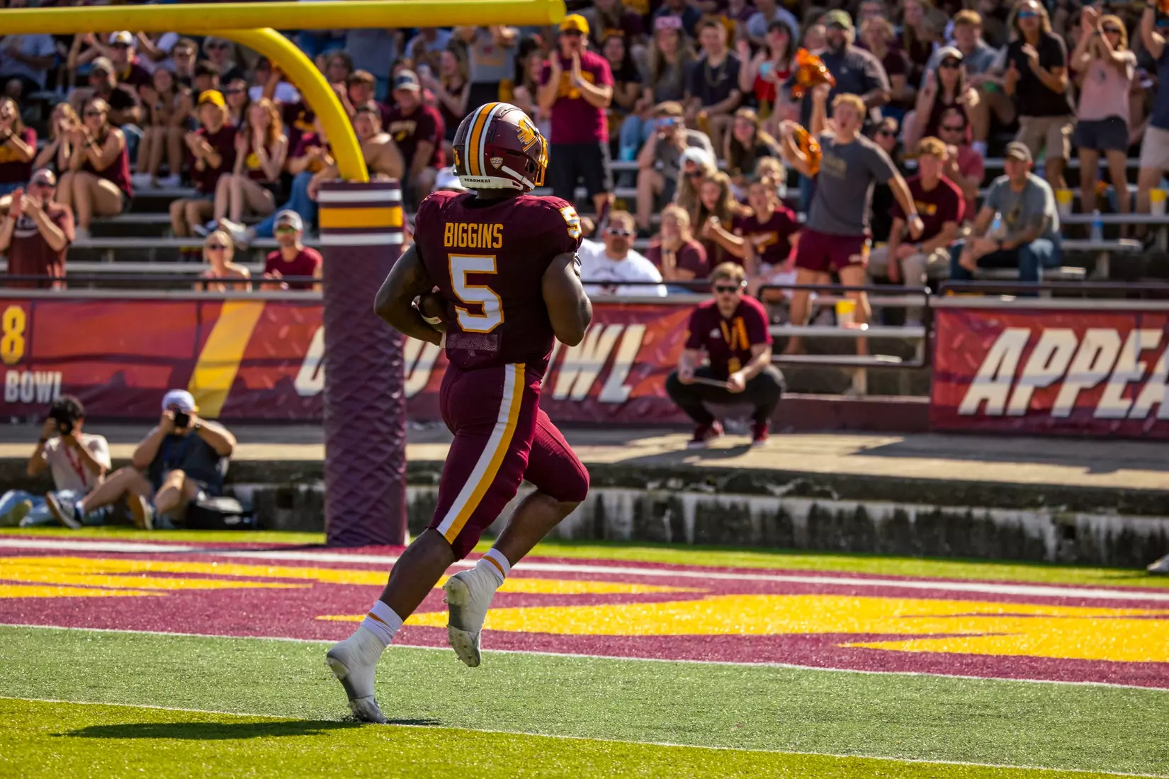 Biggins' 49-yard TD scamper, CMU's longest TD run of the season, came less than five minutes later.