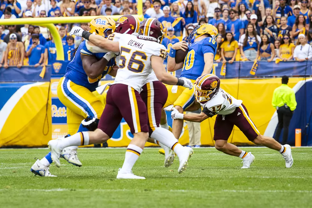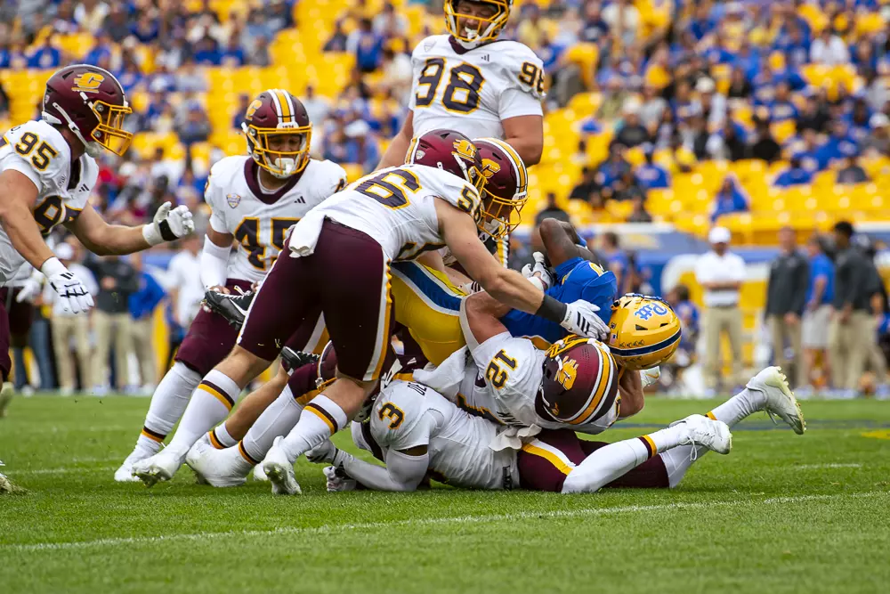 The Panther defense, which frequently loaded the box with nine defenders, held CMU to just 7 rushing yards in the first half and 40 for the game. The Chippewas produced just one running play of more than 10 yards.
