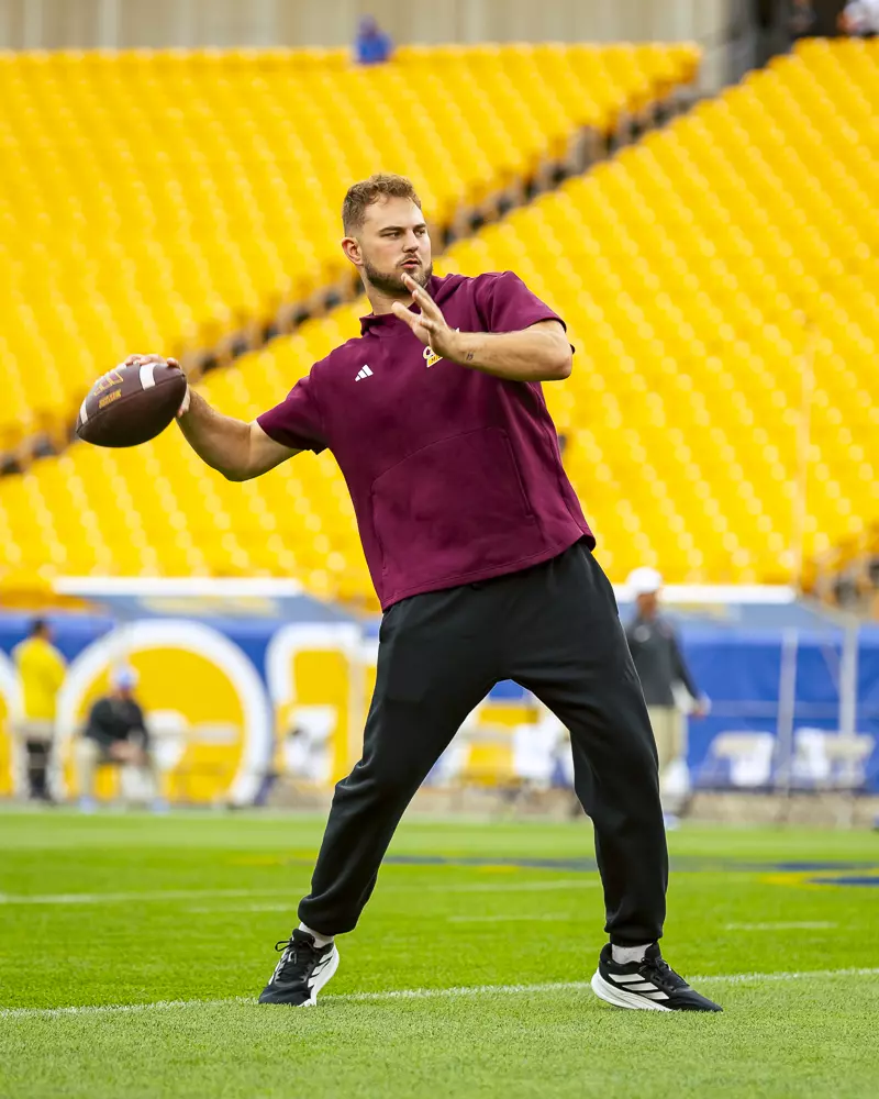 Pitt quarterback Eli Holstein threw for 304 yards and four touchdowns on 21-of-28 passing. Three of his TD passes came in the first half as Pitt built a 24-3 lead.