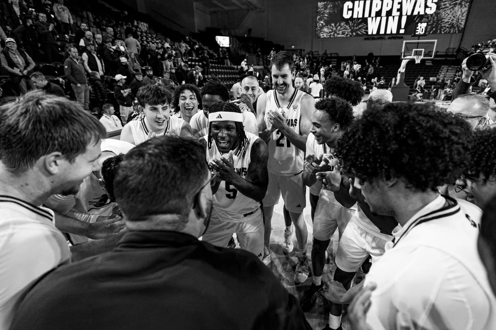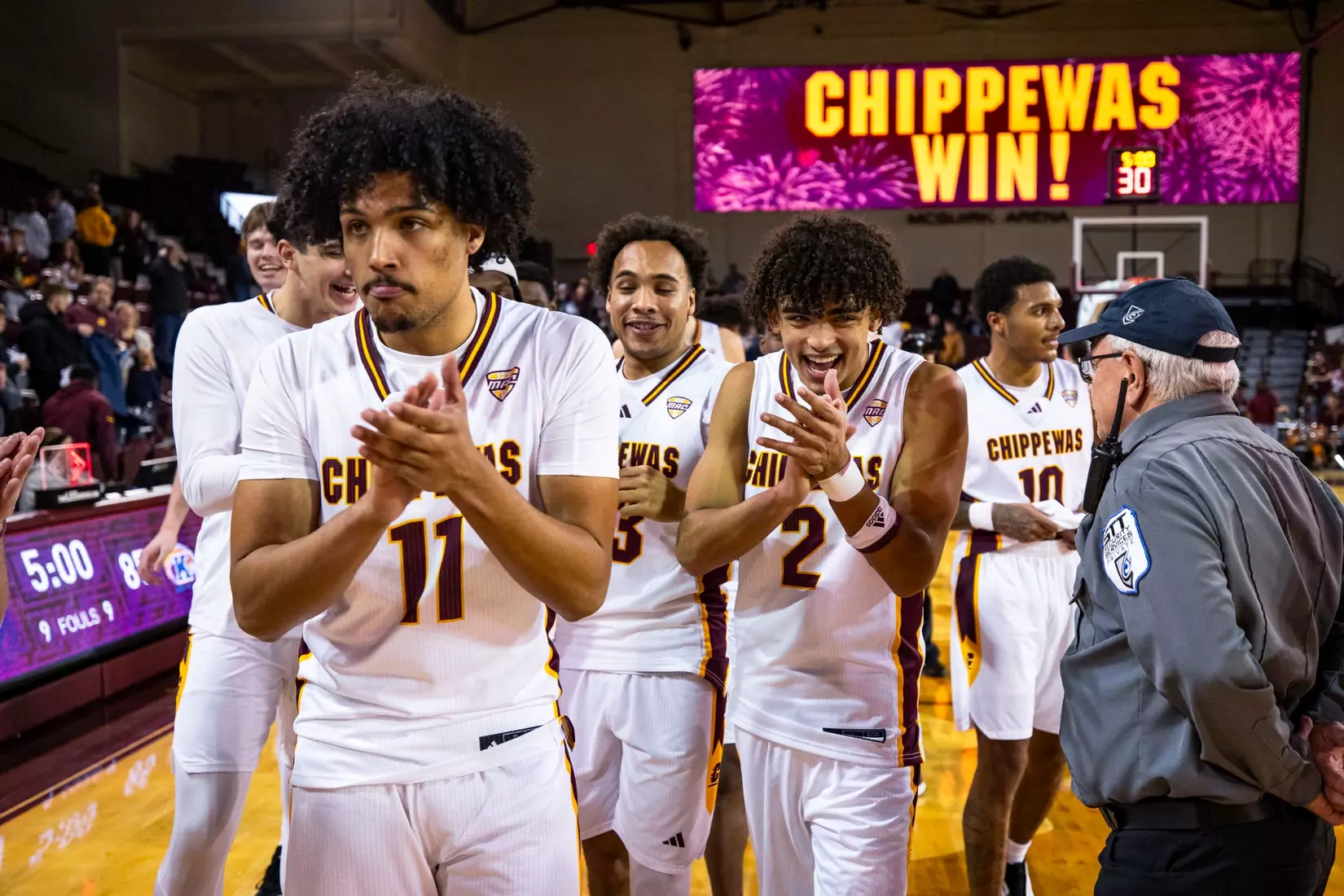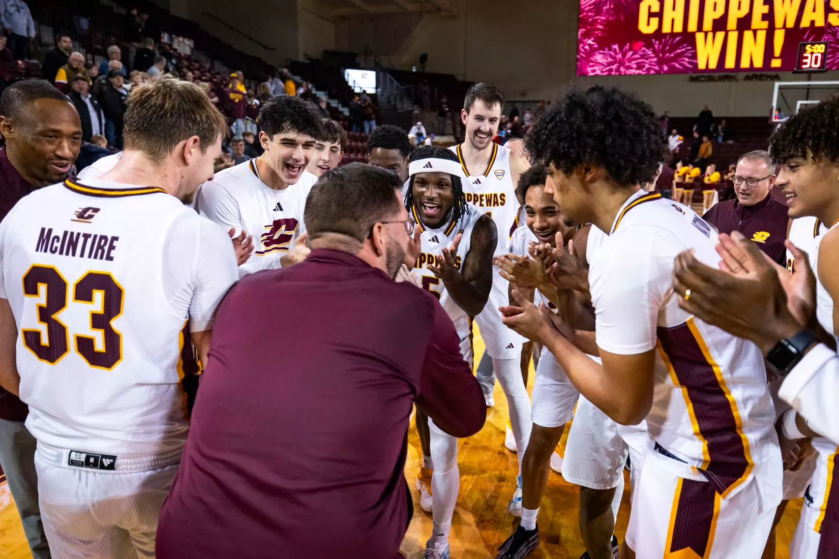 Chippewas rally in final three minutes to win first MAC game of the 2025-26 season; Phat Phat Brooks scores career-high 20 points; Keenan Garner scores a career-high 16 points (5-7 FG), Tamario Adley adds 15 points and eight rebounds in victory.