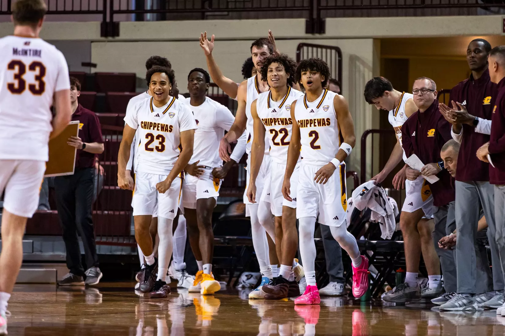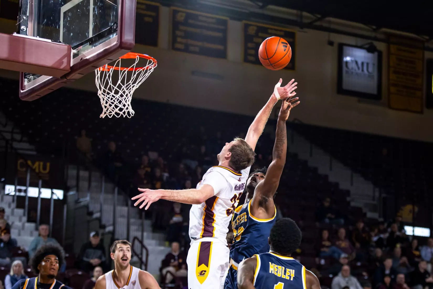Before a back-and-forth second half, Central Michigan held a 49-43 lead at halftime. The Chippewas used a 7-0 late in the half to take its six-point lead into the break. Garner started the rally with a 3-point play off a layup and McIntire assist, Nick Mullen hit a layup, and McIntire scored on an offensive rebound putback.