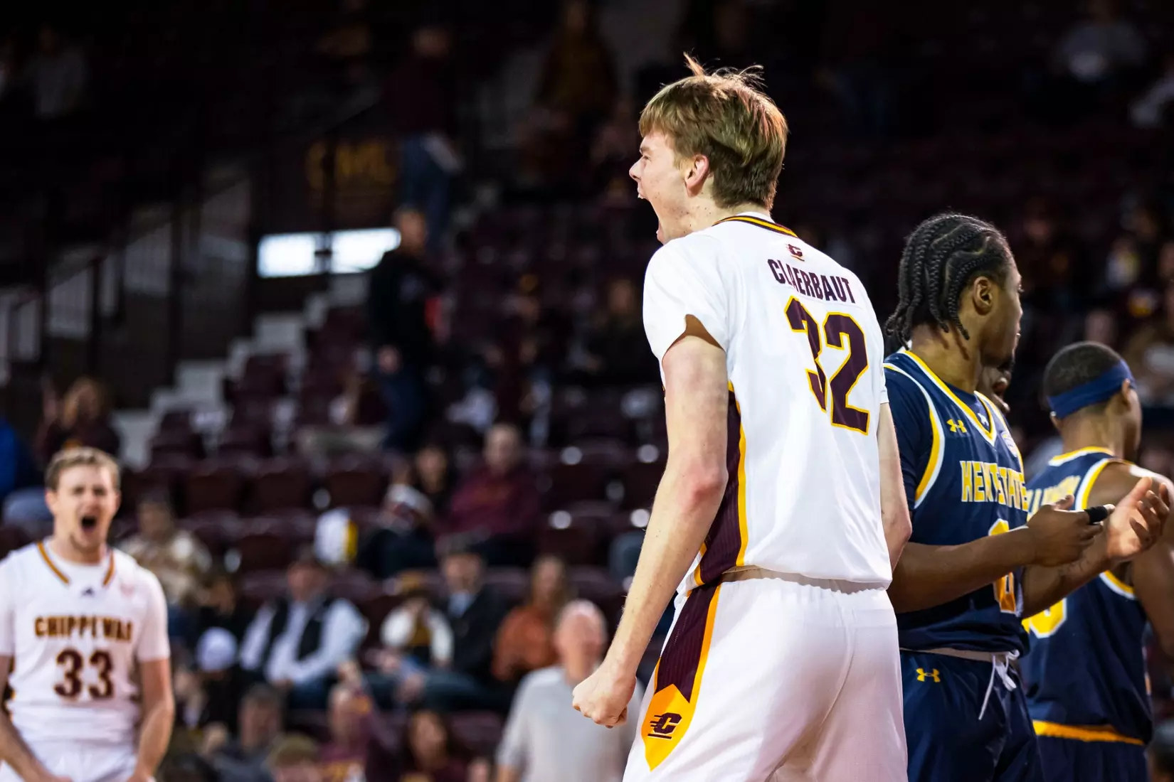 After Kent State's Rob Whaley, Jr. scored on a 3-point play, it was all Chippewas as they put together an 8-0 run and never trailed again. Brooks scored on a floating jump shot, McIntire converted a driving layup off a Brooks assist, Adley grabbed an offensive rebound and scored on a putback, and Claerbaut scored on a putback to give CMU a commanding 85-80 lead with 39 seconds to play.