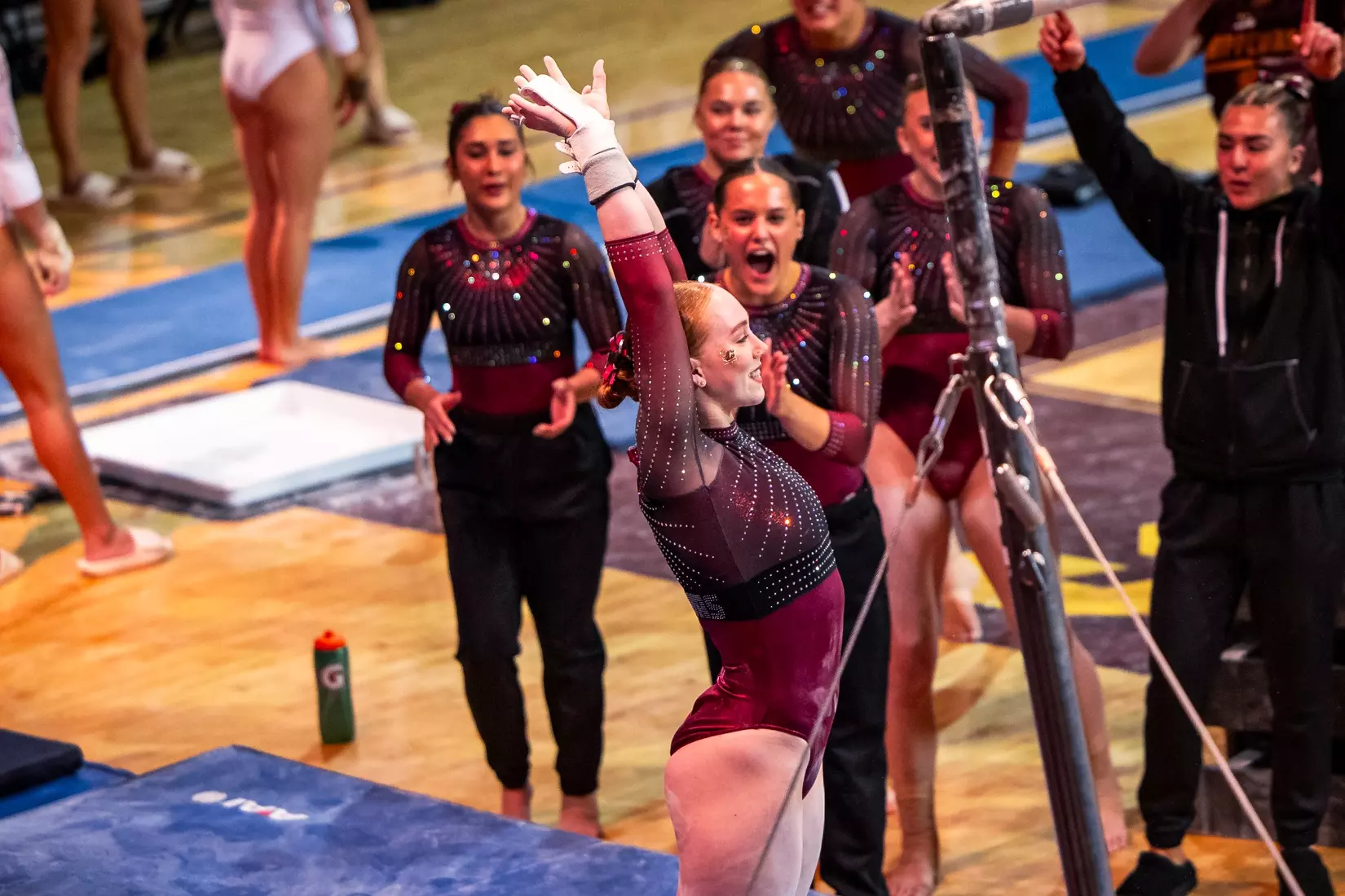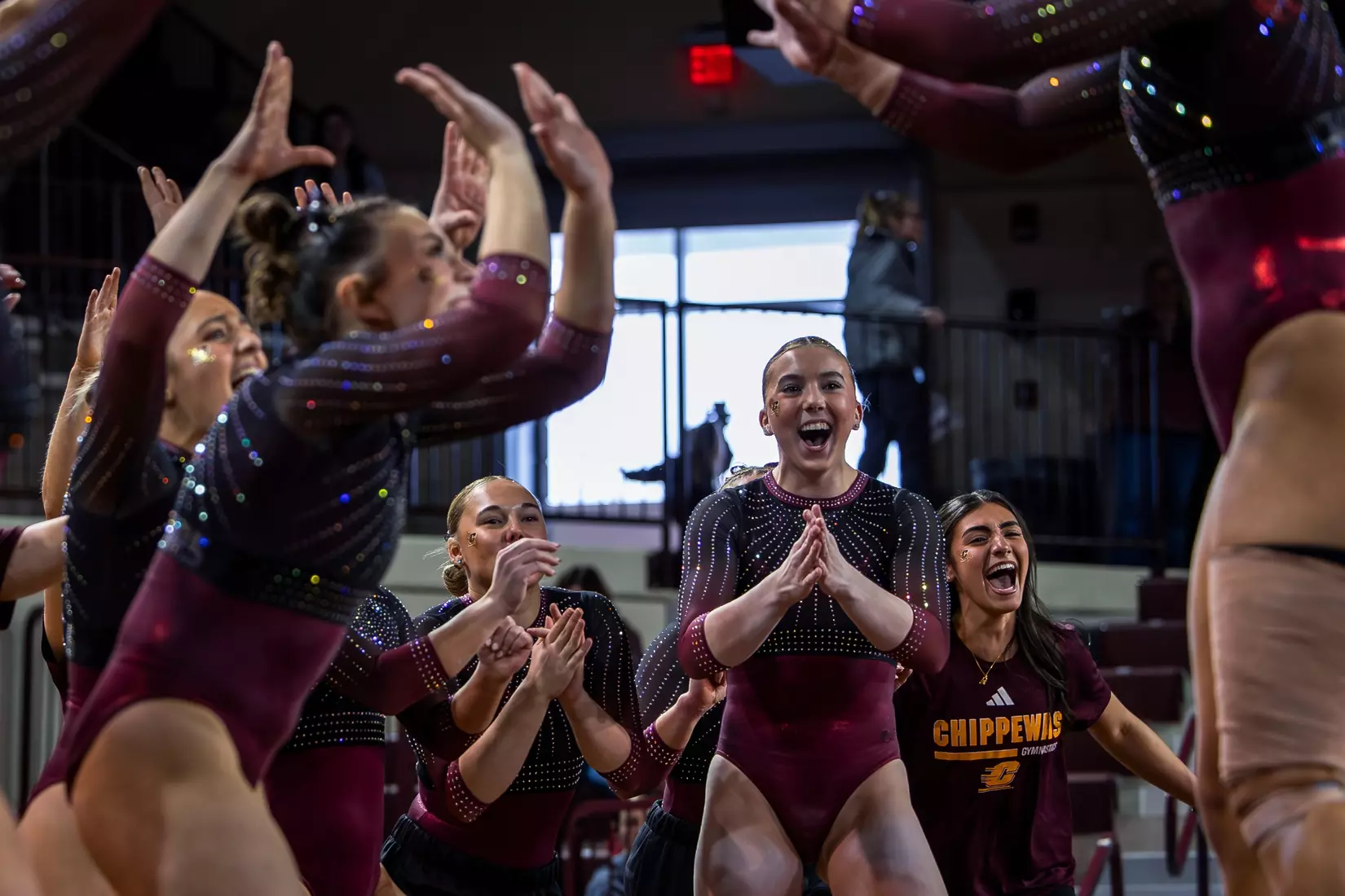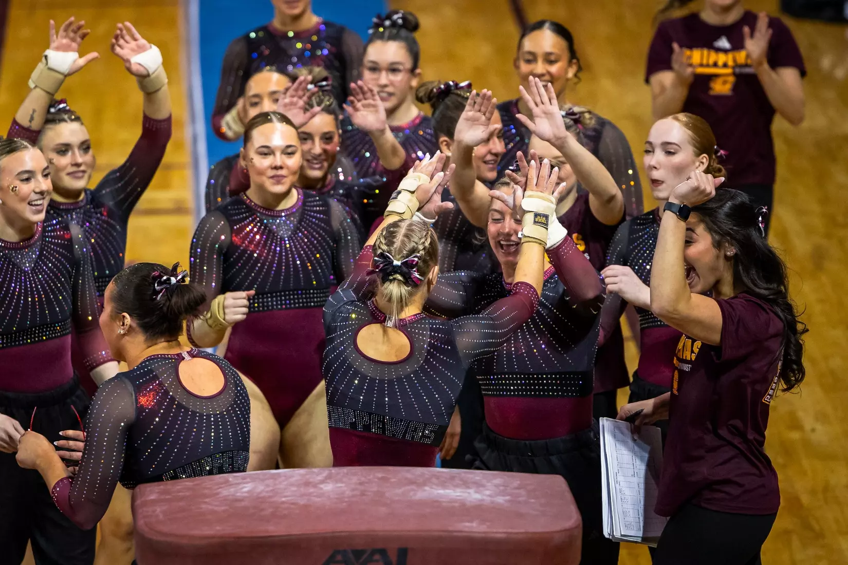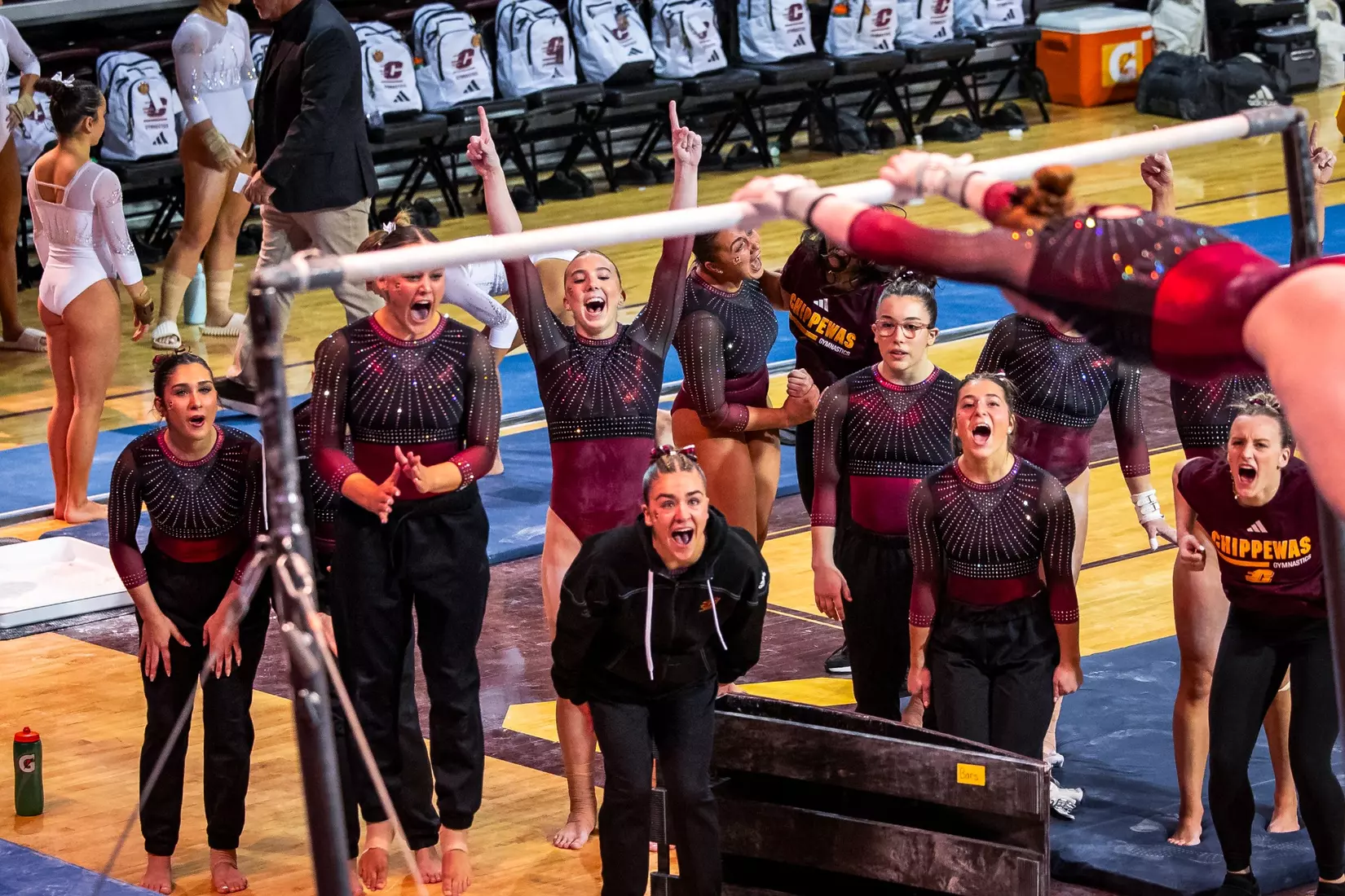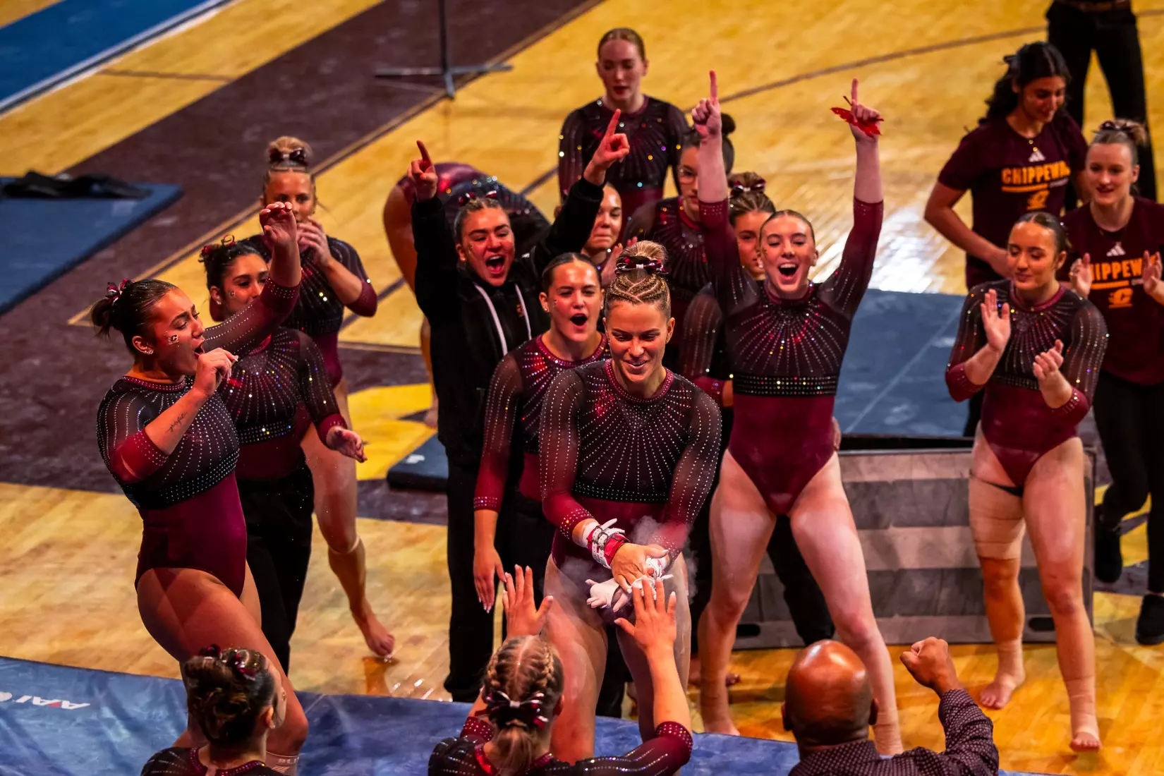 The Chippewas earned their first MAC win of the season by taking three of the four events, led by a sweep on uneven bars with a team score of 49.150.