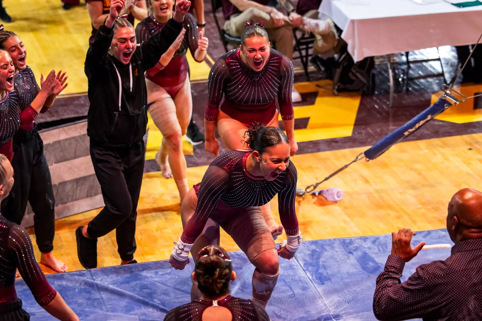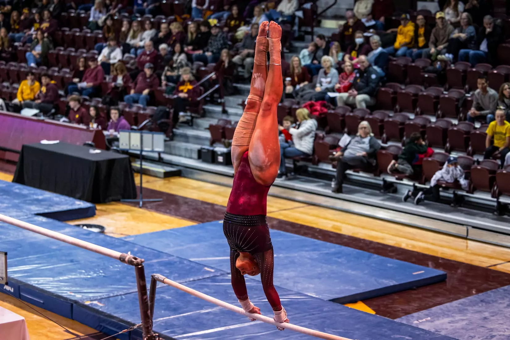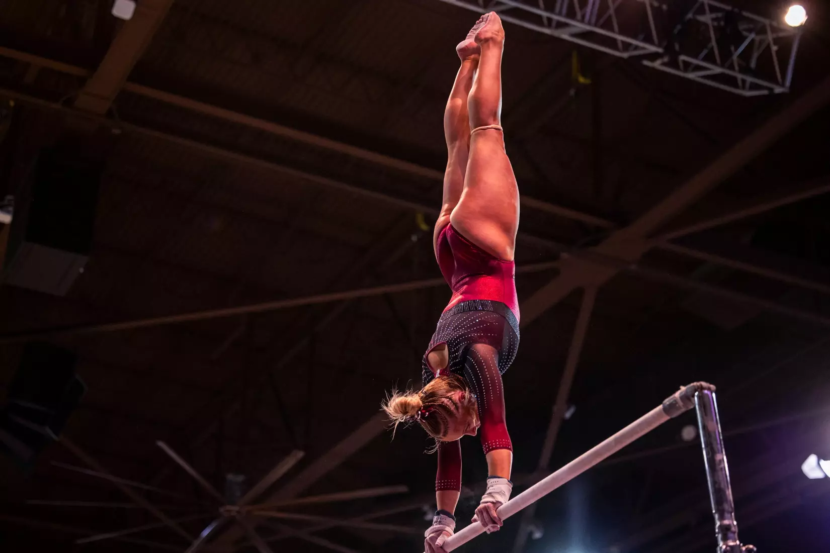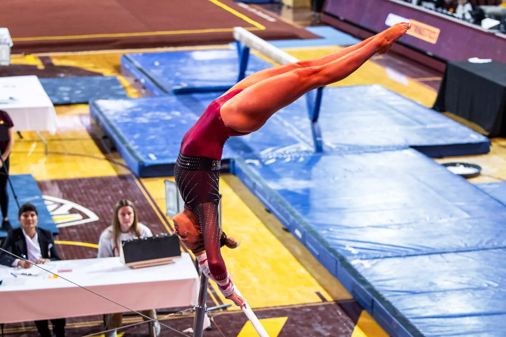 Lia Kmieciak tied her career-best to win bars with a 9.900 and Luciana Alvarado-Reid placed second with a 9.850. Ava Wellmeier and Kaitlyn Schwab tied for third, each scoring 9.825, and a new career-high for Wellmeier.