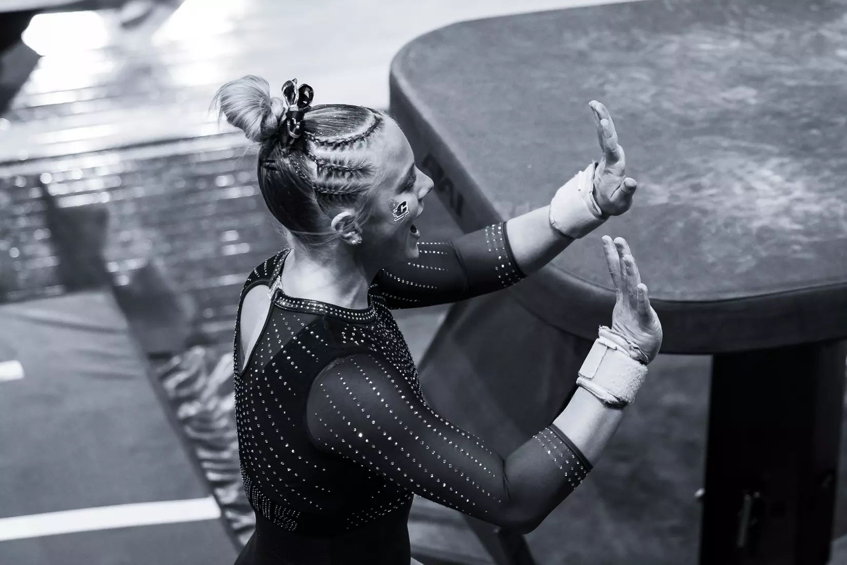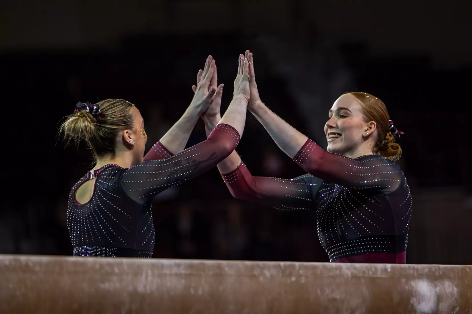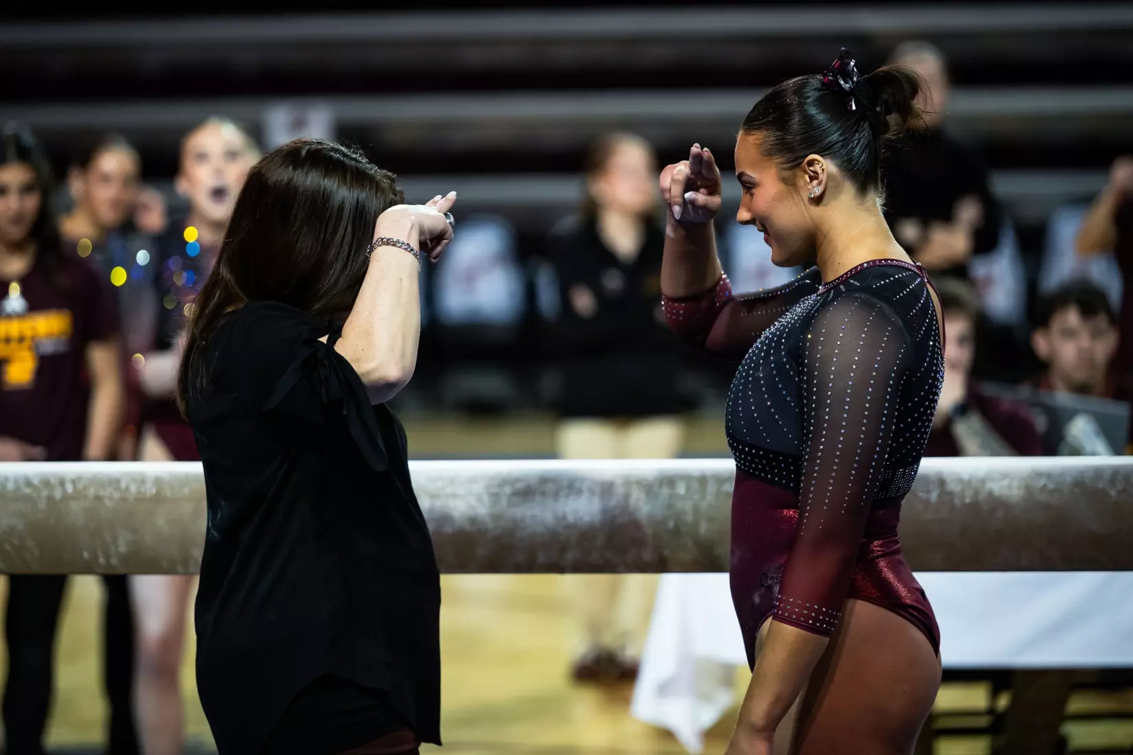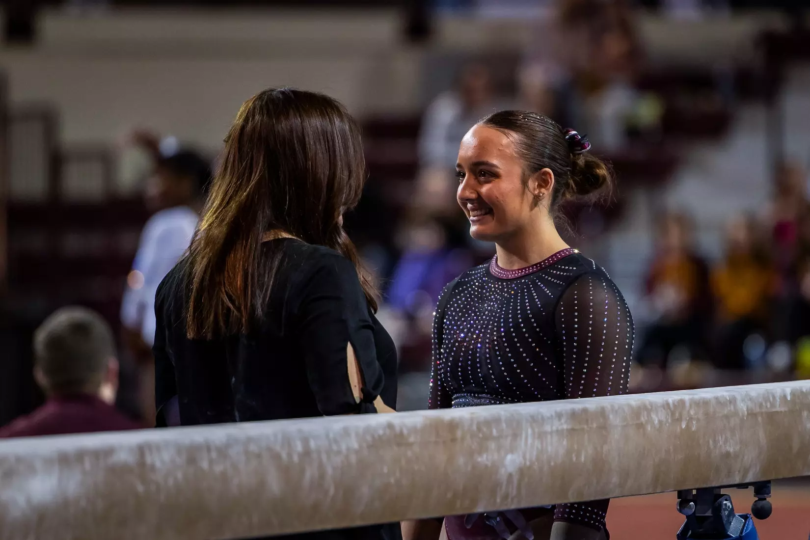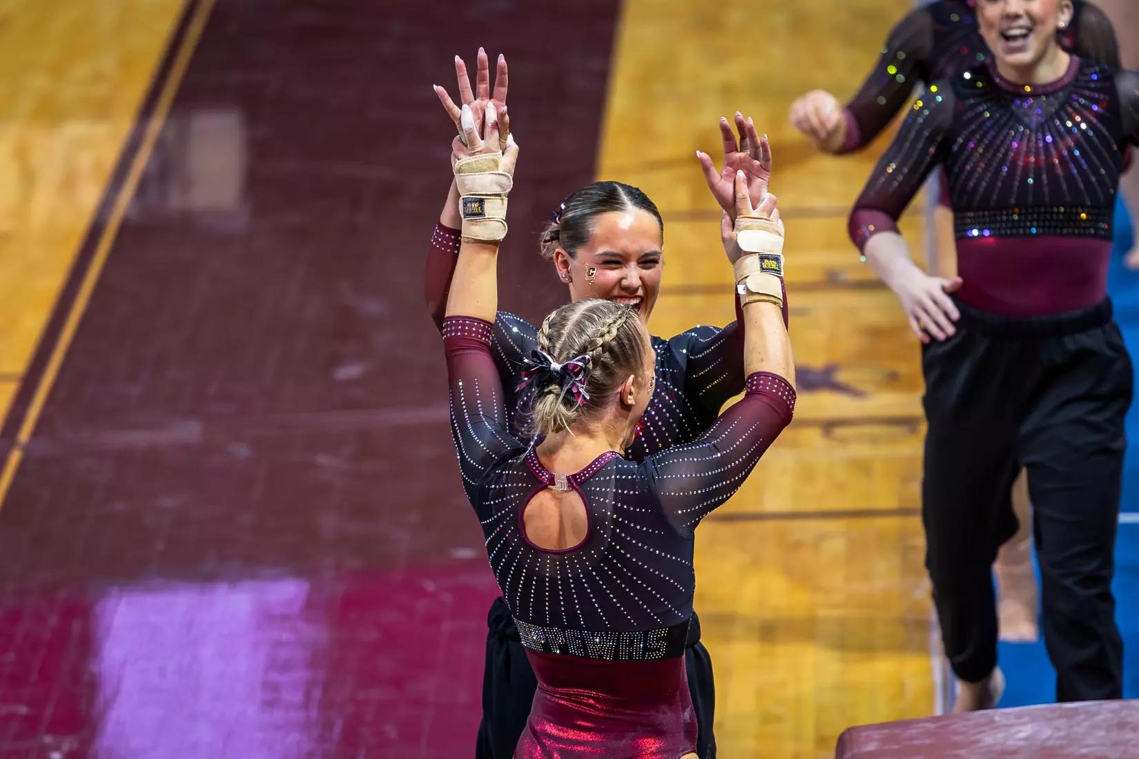 Lia Kmieciak tied her career-best to win bars with a 9.900 and Luciana Alvarado-Reid placed second with a 9.850. Ava Wellmeier and Kaitlyn Schwab tied for third, each scoring 9.825, and a new career-high for Wellmeier.