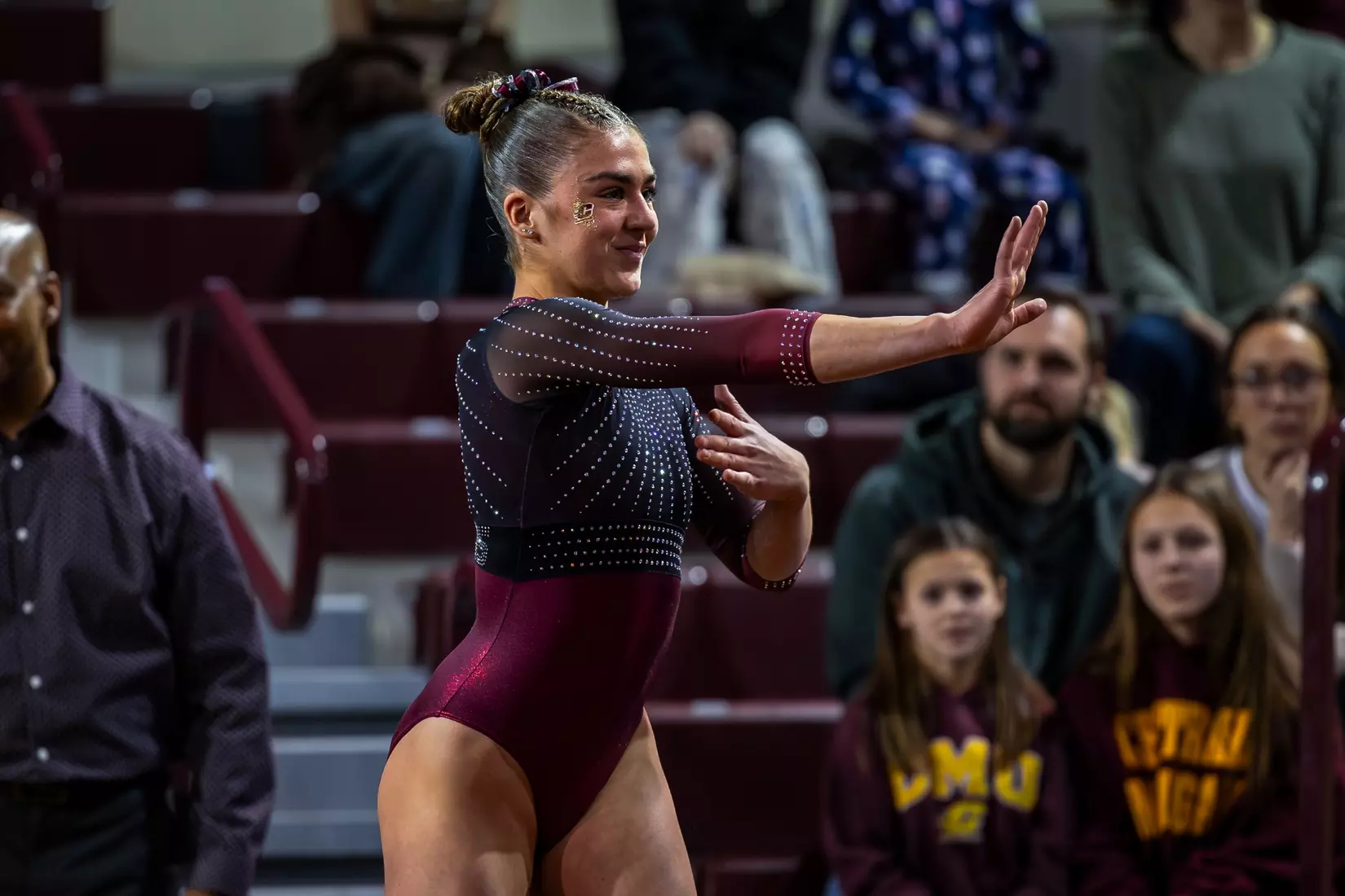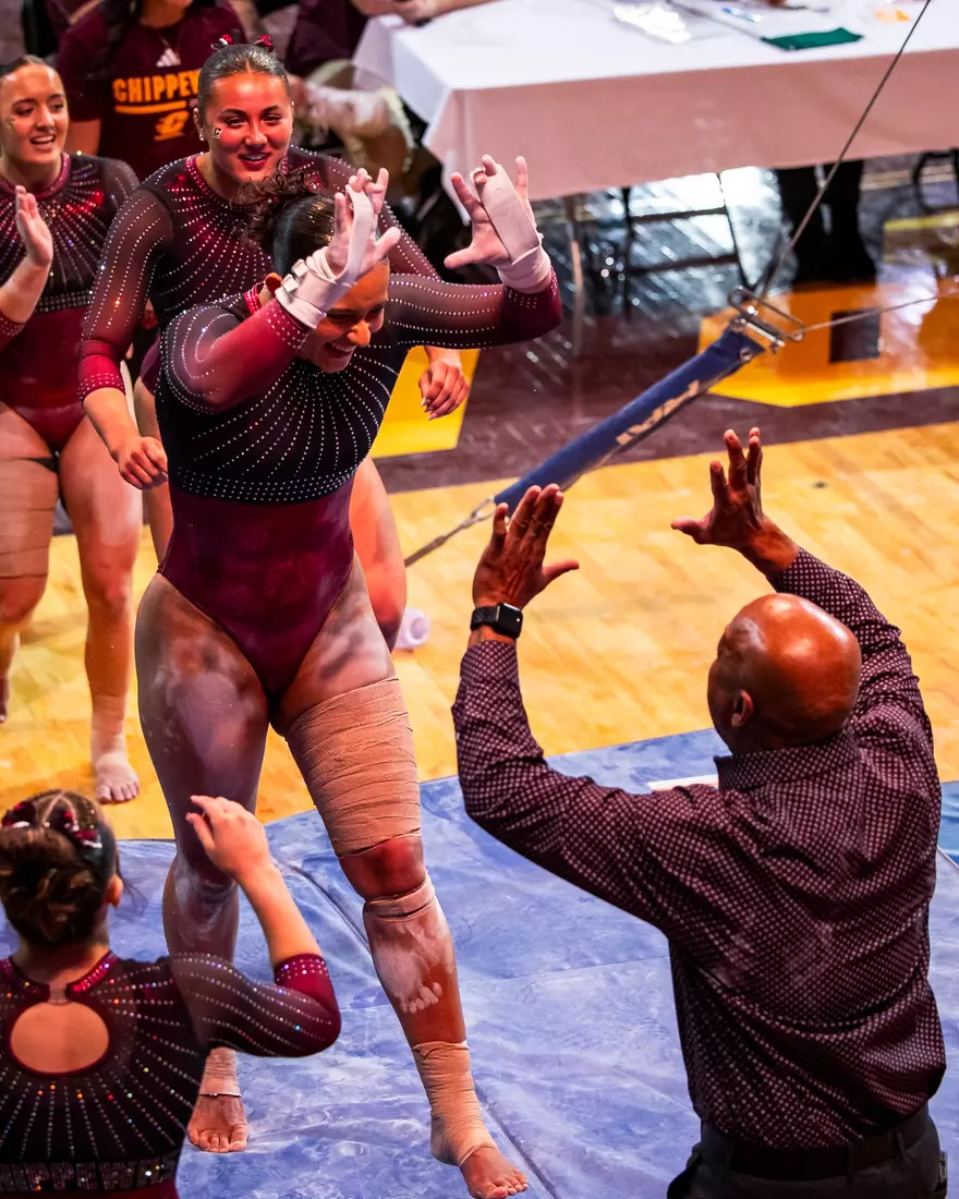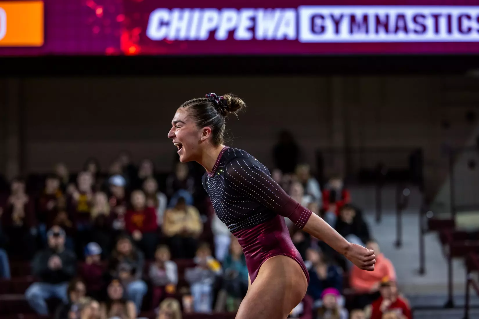Trailing heading into the final rotation, the Chippewas delivered on floor with a 48.975. Alvarado-Reid capped the meet with an event-winning 9.900, while sophomore Zoë Zimmerman claimed second with a 9.825. Junior Jenna Germond and Wellmeier tied for third, each scoring 9.800.