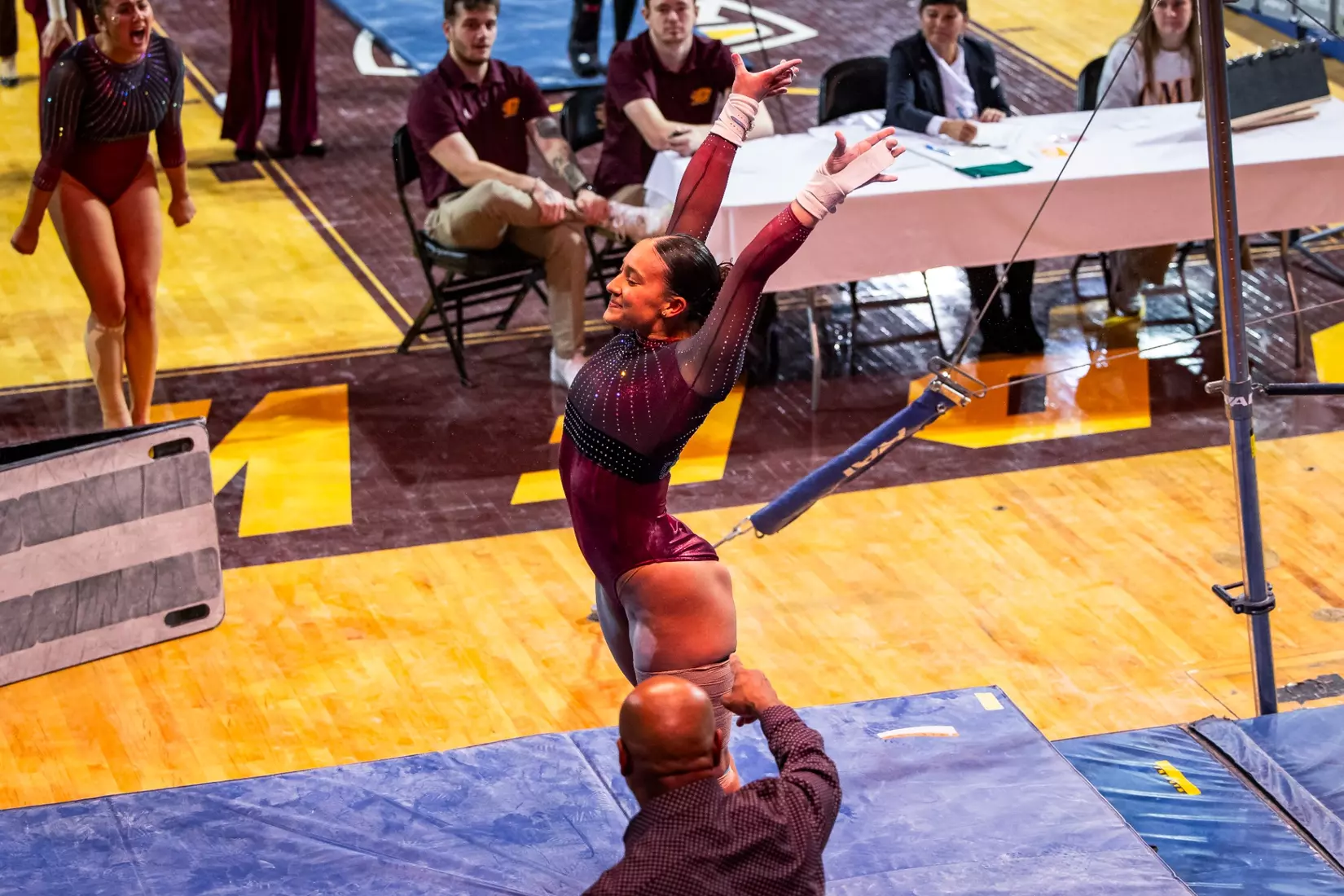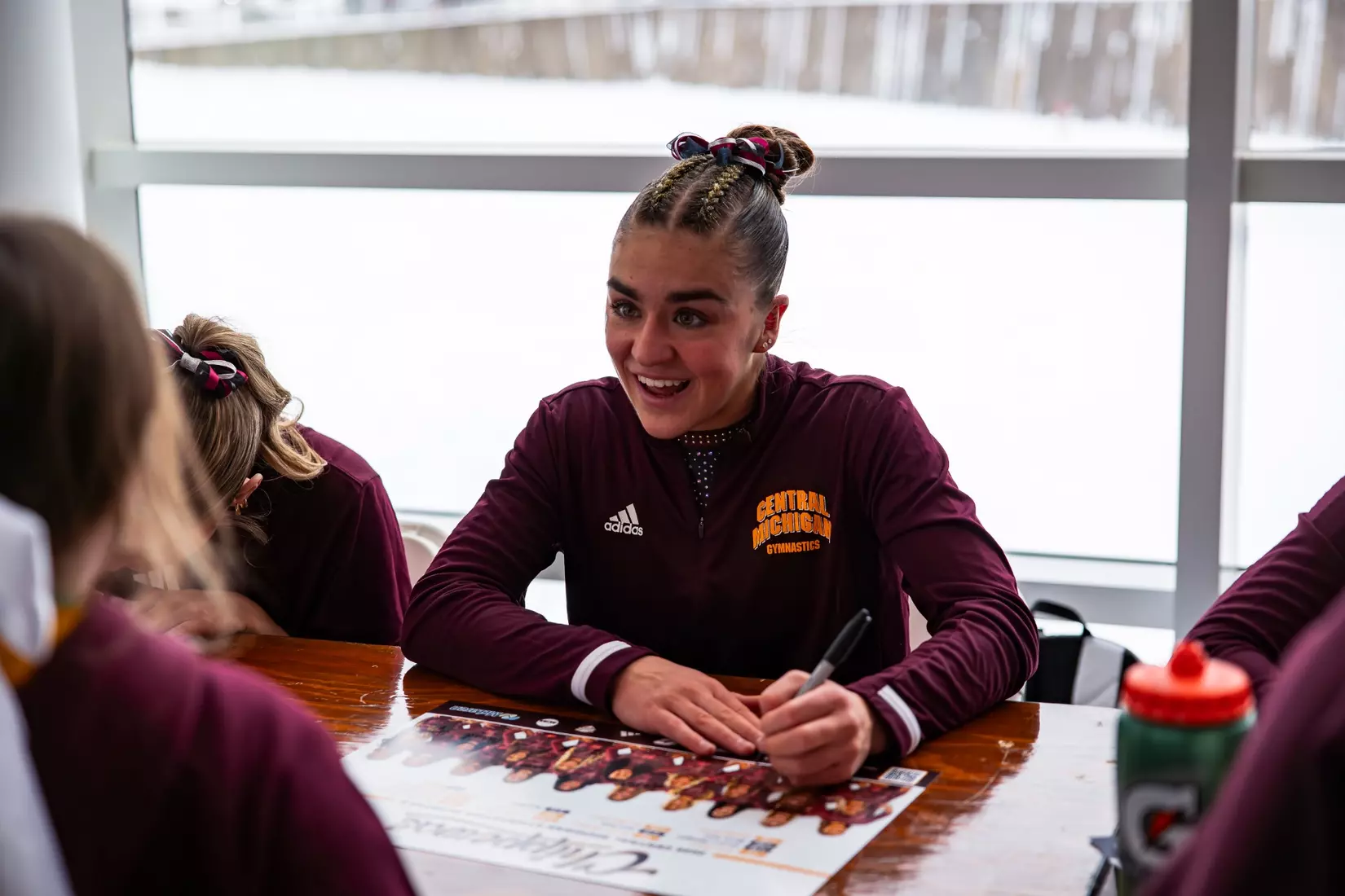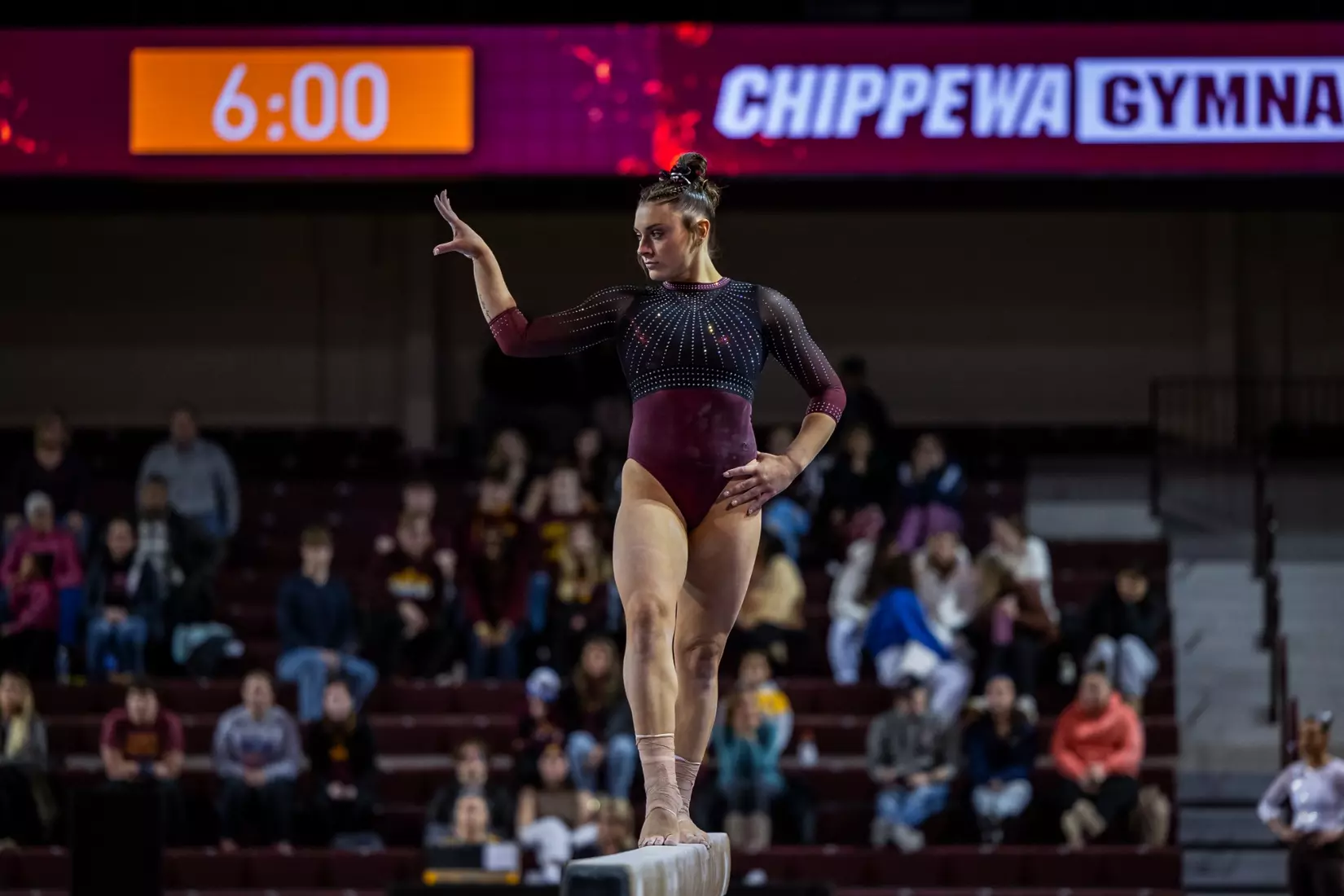 Trailing heading into the final rotation, the Chippewas delivered on floor with a 48.975. Alvarado-Reid capped the meet with an event-winning 9.900, while sophomore Zoë Zimmerman claimed second with a 9.825. Junior Jenna Germond and Wellmeier tied for third, each scoring 9.800.