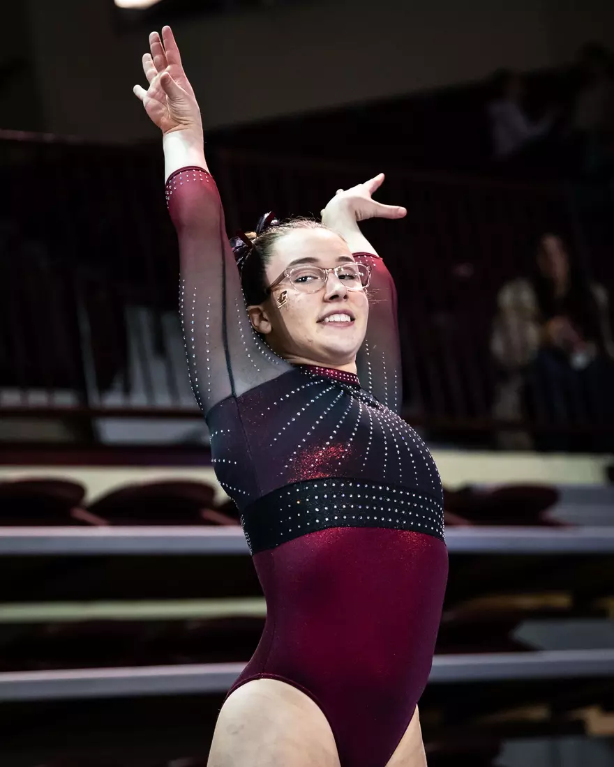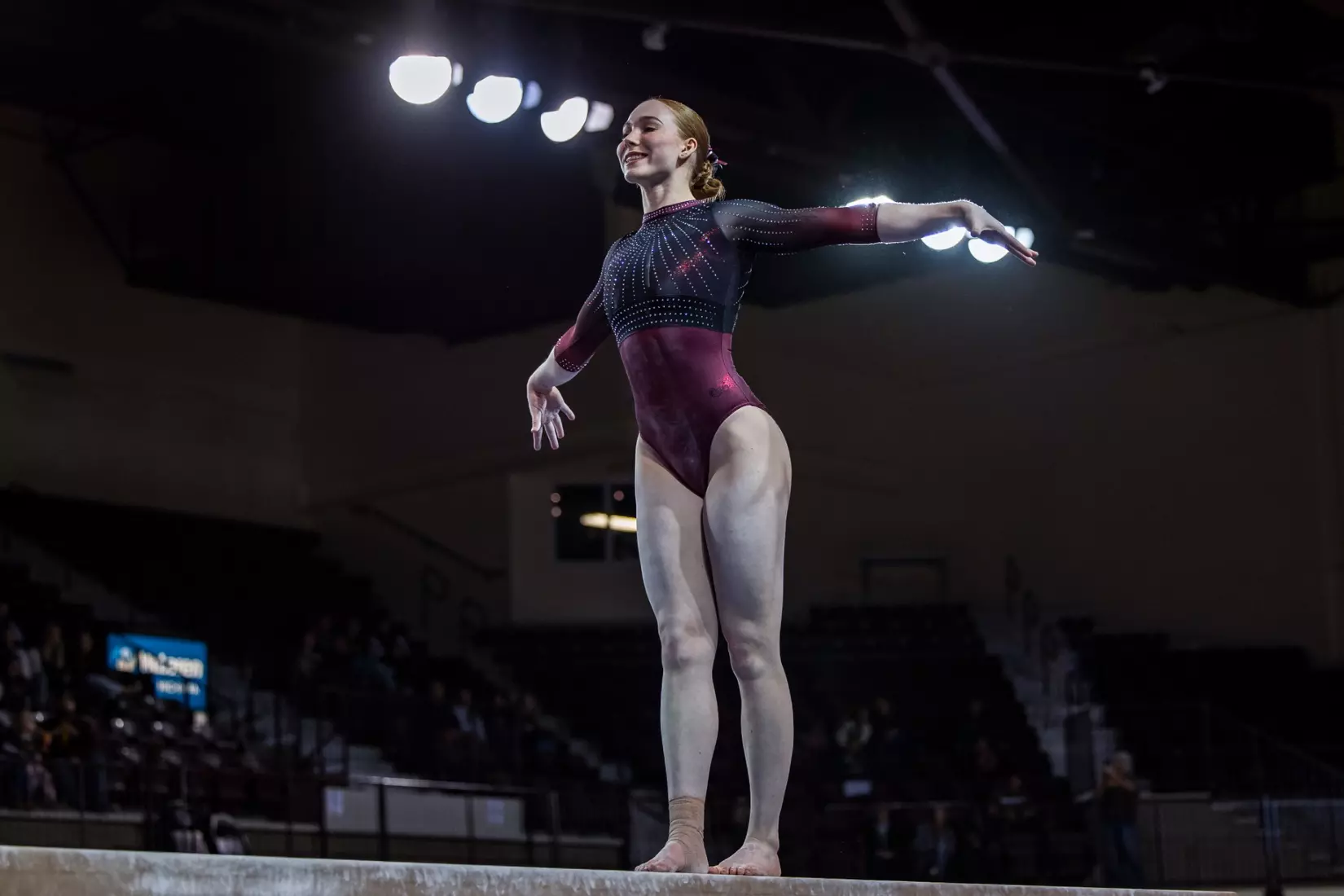 Junior Zoie Pelfrey took first on balance beam posting a 9.800.