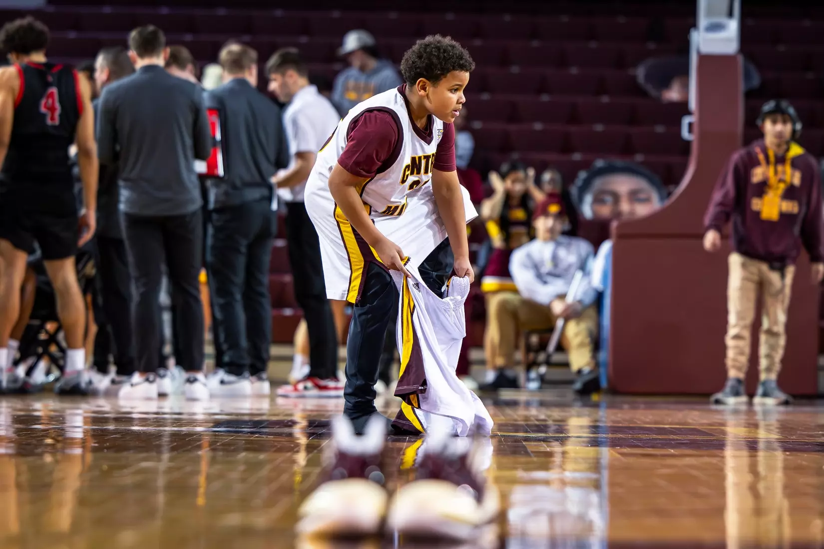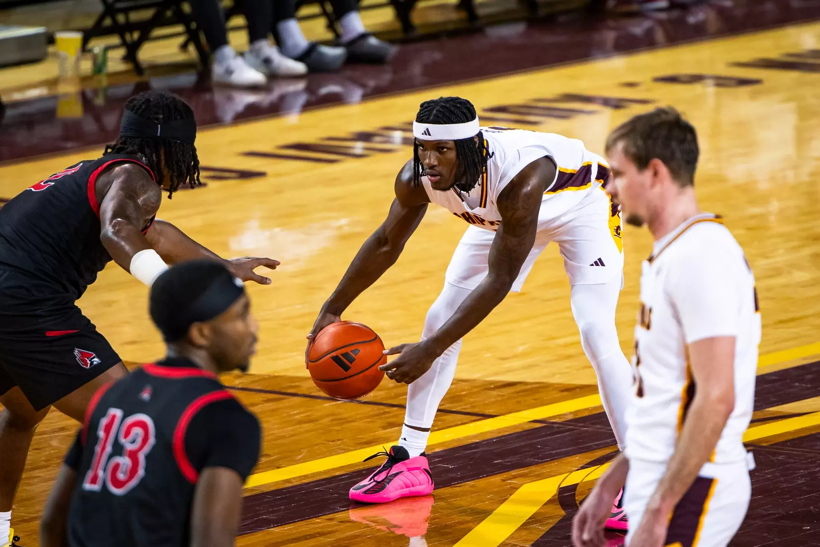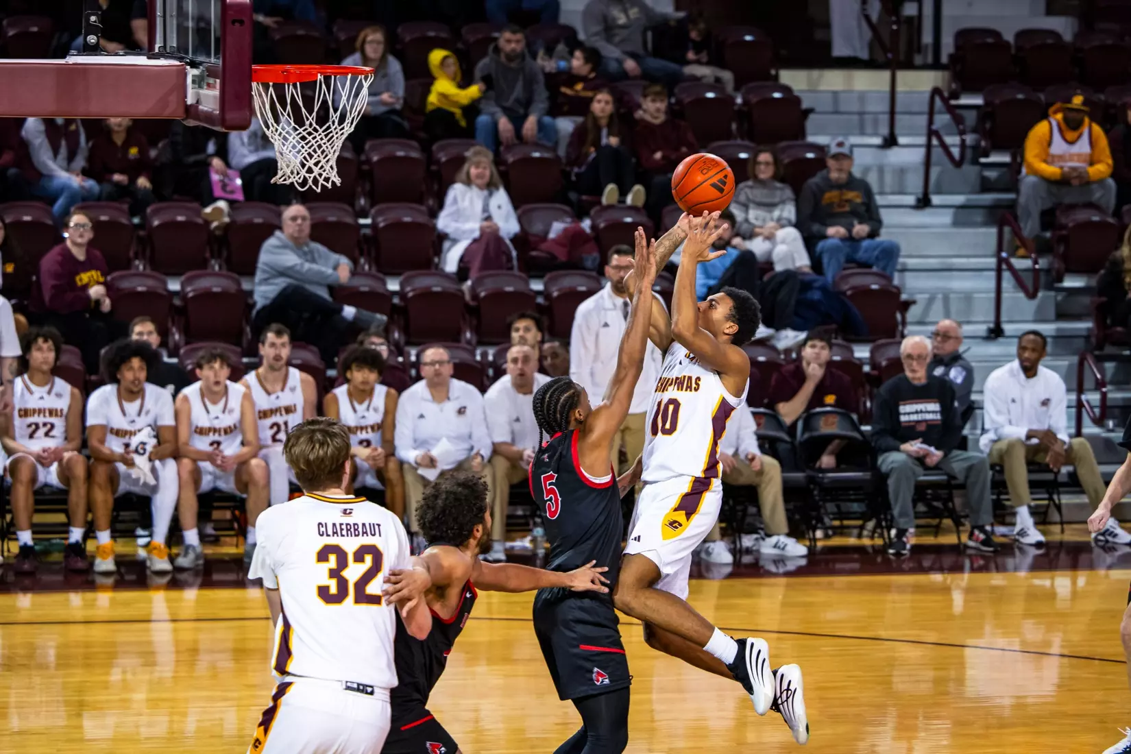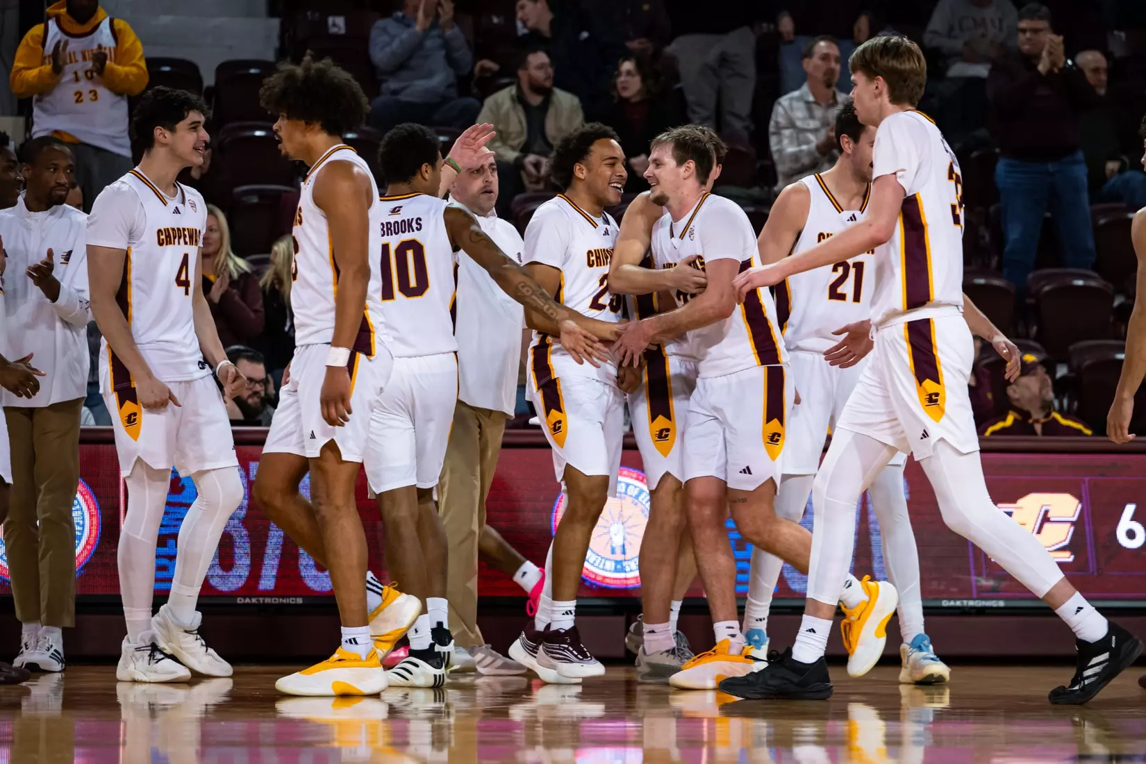 Central Michigan started Phat Phat Brooks, Adley, and McIntire at guard, Garner at forward, and Claerbaut at center.