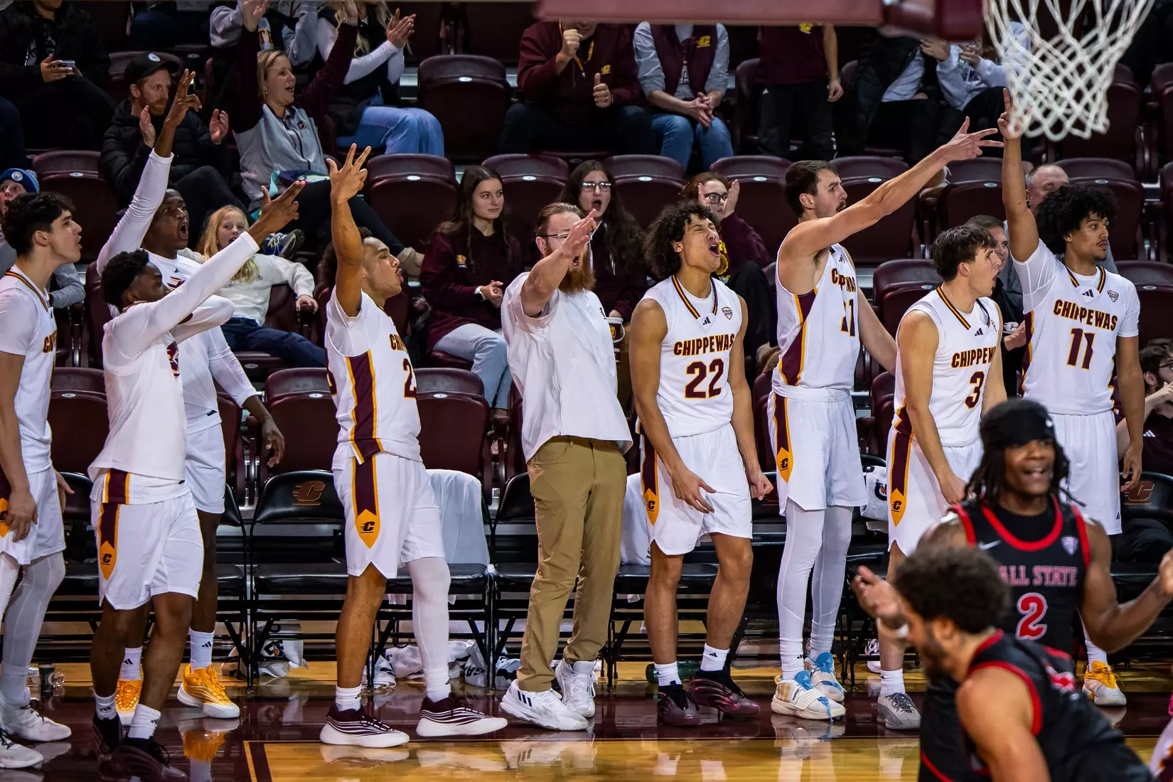 During the final 4:18, Central Michigan outscored Ball State 15-10, went 5-5 from the floor, and 3-3 from three-point range. Despite the Chippewas' comeback, Ball State regained it's lead on the possession after McIntire's game-tying three and didn't look back.