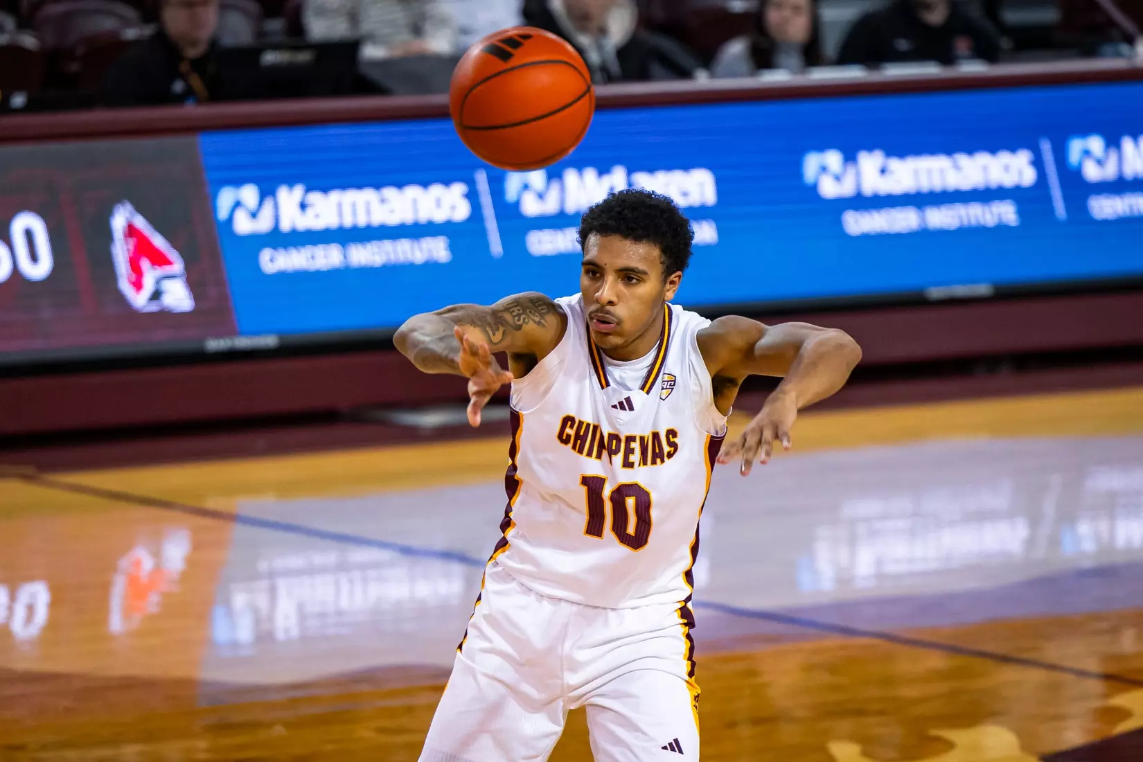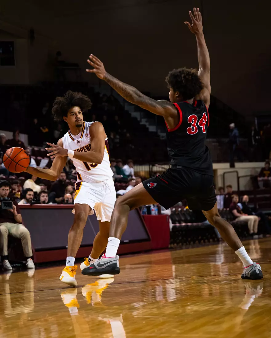 The Chippewas shot 48.1 percent (25-52) from the floor, dished out 13 assists on 25 field goals, and outrebounded the Cardinals 34-32.