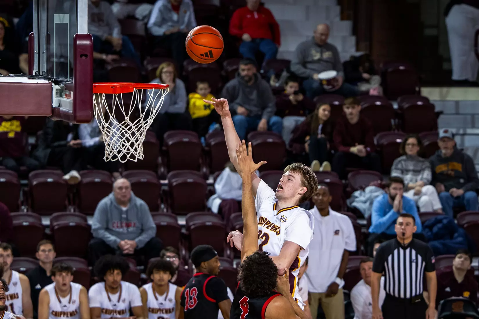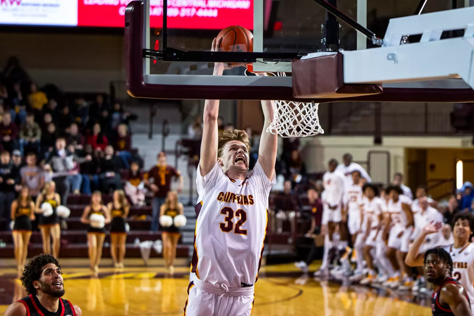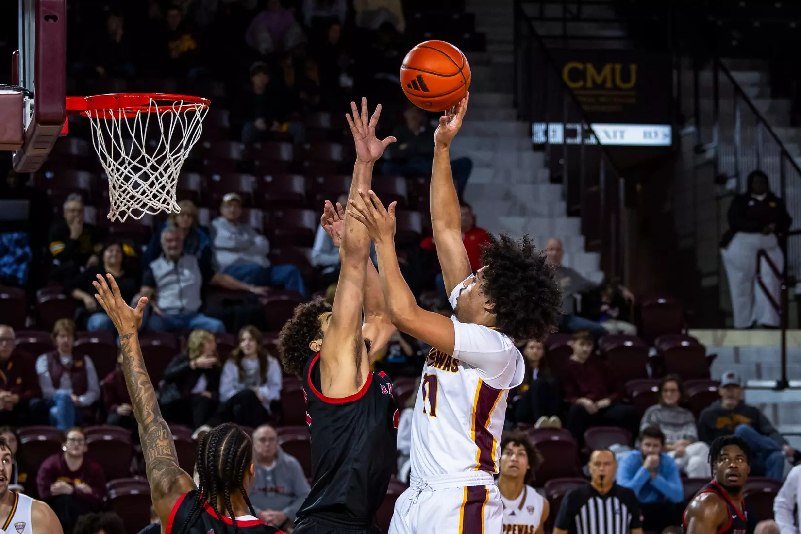 Two minutes into the second half, Central Michigan started chipping away at the Cardinals' 15-point lead, their largest of the game, with a fast break layup from Adley for his first two of 18 second-half points.