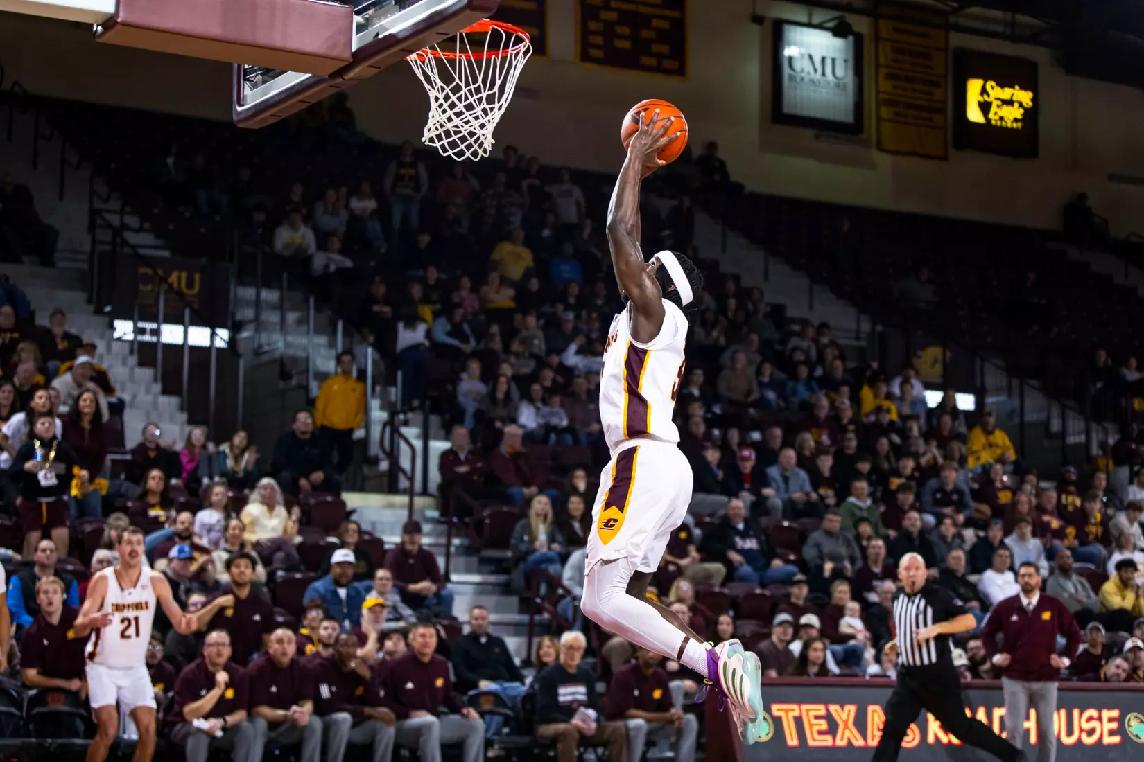 Adley snuck around the back and stole the ball, dribbled in to give CMU a 69-55 commanding lead with 6:14 to play. Two Keenan Garner free throws gave CMU its largest lead of the game, 16 points (79-63) with 1:29 to go.