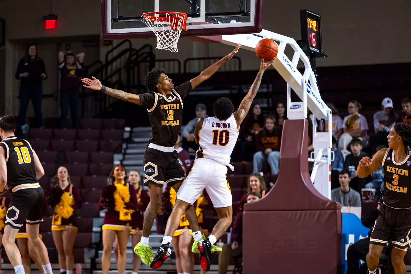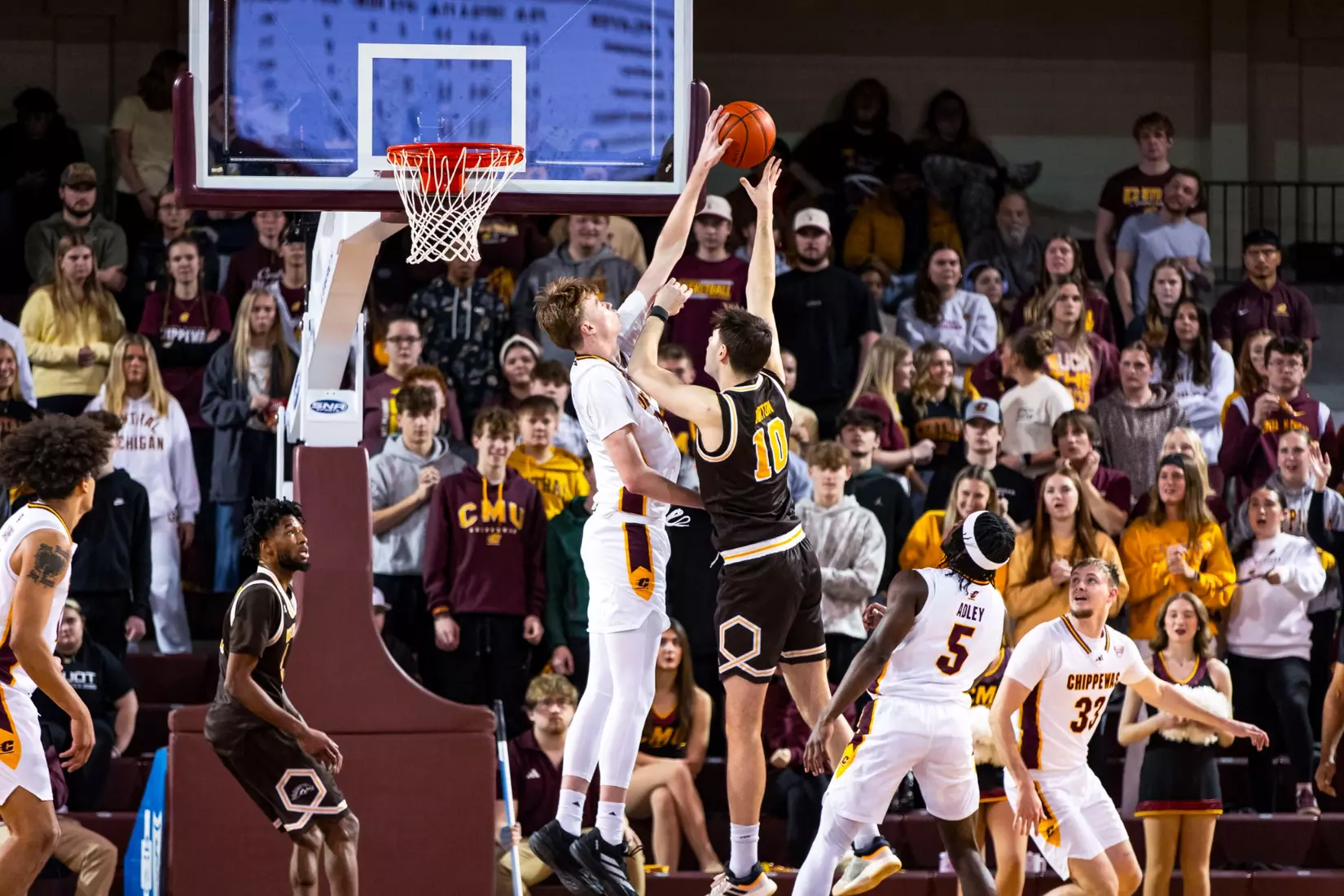 In the second half, the Broncos cut the lead down to three points, but Central Michigan answered with a 10-0 run to extend its lead to 13 points (55-42) with 13:38 to play. Adley registered a steal, passed to Whitaker, who lobbed Adley a pass in the air for an alley-oop dunk. Brooks started the rally with a layup, followed by a Jalen Kampen 3-pointer, two Whitaker free throws, an Adley free throw and then the alley-oop dunk.