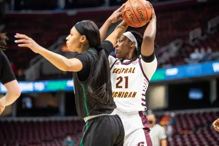 2021-22: Steady and solid program mainstay started all 27 games … averaged 29.1 minutes per game … averaged a double-double with 12.5 points and a team-high 10.4 rebounds per game … became the first Chippewa to average a double-double since Reyna Frost in 2018-19 … ranked second in the MAC and 26th nationally in rebounds per game … led the MAC and ranked ninth nationally with a .590 field goal percentage … her field goal percentage is the second best for a single season behind the .591 posted by Jody Beerman in 1985-86 … boasts a CMU-best .577 career field goal percentage … scored a career-high 21 points v. Miami (Ohio) (Jan. 26) and hauled down a career-high 23 rebounds v. Western Michigan (Jan. 5) … that 23-rebound effort was a season high for a MAC player … had three of the top-six rebounding games among MAC players on the season … her 23 rebounds were one shy of the program record … posted a career-high five blocks v. Northern Illinois (Jan. 1) … had 11 double-doubles on the season including six in her final 10 games … has 14 career double-doubles.