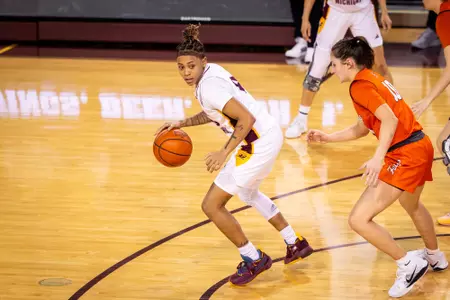 2023-24 (Illinois Springfield): Transferred to Central Michigan from NCAA II University of Illinois Springfield of the Great Lakes Valley Conference (GLVC) … played in 28 games with 27 starts … set new single-season program records in points (478), steals (78) and field goals made (172) … named All-GLVC First Team, just the second in program history … led the GLVC in steals both per-game (2.8) and total (76) in the regular season … named CSC Academic All-District … named UIS’s Female Athlete of the Year … was the Prairie Stars’ leader in points (17.1ppg), rebounds (8.0rpg), assists (3.36apg) and steals (2.79) … scored season-high 28 points against Drury (MO) (Jan. 3), led to first career double-double 14 rebounds … logged eight 20-point games … posted season-high 15 rebounds with 24 points for second career double-double at Southwest Baptist (MO) (Jan. 25) … logged seven double-doubles including four straight to end the regular season.