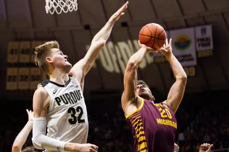 2017-18: Played in 34 games ... led the MAC in free throw percentage (.861) ... ranked tied for second on the team in rebounding (11th in the MAC) (6.5 prg) ... ended the season No. 2 in the MAC in offensive rebounding (3.4 rpg) (conference games only) ... totaled 62 steals, which ranked fourth in the MAC and was one shy of tying the CMU single-season program record ... recorded at least one steal in 30 of 34 games ... finished third on the team in assists with 63 ... averaged 12.2 points per game ... topped CMU in scoring in seven games and reached double figures 20 times ... shot a team-best .554 from the field ... led the team with 22 points in season opener versus Siena Heights (11/10) ... posted 19 points and seven rebounds against Cal Poly at Great Alaska Shootout (11/24) ... topped the Chippewas with 17 points in 75-48 rout of Montana State (12/5) ... scored a career- and team season-high 33 points at Northern Illinois (2/13) ... recorded a career-high 16 rebounds and second double-double of the season (14 points) versus Eastern Michigan (2/17) ... registered his third double-double in the span of four games at Western Michigan (18 points, 11 rebounds) (2/20) ... scored 20 points, making a career high three 3 pointers, in CIT win over Fort Wayne (3/12) ... posted 21 points, eight rebounds and six assists in CIT win over Wofford (3/16).