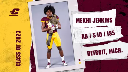 Born Mekhi Jenkins on April 12, 2005 in Detroit, Mich. … Mother is Viola Jenkins … One of six siblings: Eryne Jenkins, Romeiro Williams, Eriel Jenkins, Mauricio Jenkins, and Adaesa Williams … Older brother Mauricio plays football at Lawrence Tech … Older sister Eriel played basketball at Herkimer College … Nicknames include Mek, MJ, and Khi … Role model is his brother Mauricio because he’s always looked to him for everything and served as a father figure to him … Hobbies and interests include sports, gaming, and hanging out with friends and family … Became interested in Central Michigan after attending a camp where he was extended an offer … Committed to Central Michigan on April 23, 2022 … Selected CMU because of the people, football culture, and school atmosphere … Chose Central Michigan over interest from Notre Dame, Army West Point, Eastern Michigan, Michigan State, Purdue, Kent State, Miami, Ohio, Youngstown State, and Cincinnati.