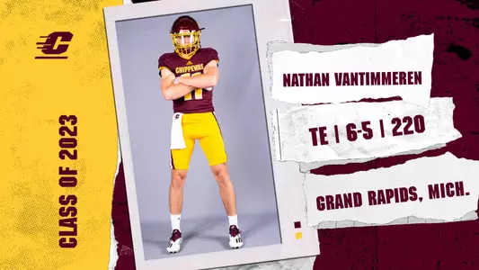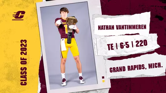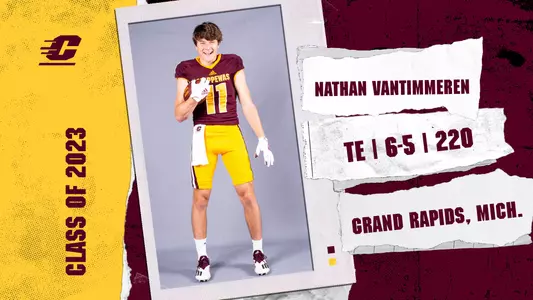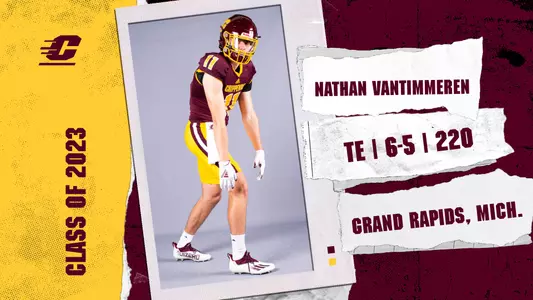 Born Nate VanTimmeren … Son of Brad and Susan VanTimmeren … Sister Ally plays basketball at Boston College … Father coaches women’s basketball at Grand Rapids Catholic Central and previously at Jenison … Sister Emily plays basketball at GRCC … Dreamed about playing college basketball but decided he loved football a bit more … Committed to Central Michigan on June 24, 2022 … Chose Central Michigan over offers from Army, Air Force, Toledo, Eastern Michigan.