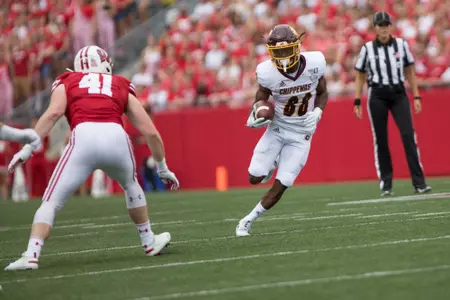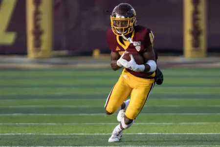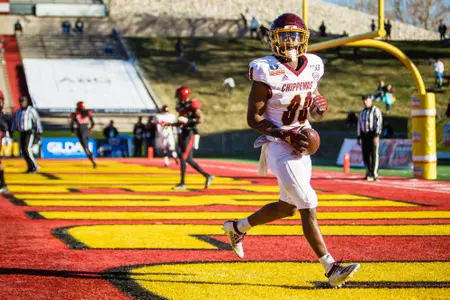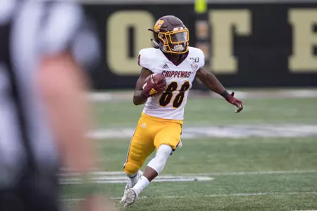 2021: Named Mid-American Conference Special Teams Player of the Year … selected to the All-MAC First Team as both a wide receiver and a punt return specialist … named to Phil Steele’s All-MAC First Team as both a receiver and a punt returner … collected first team all-conference honors as a punt returner and second team recognition as a receiver from Pro Football Focus … staked his claim as one of the nation’s most dynamic threats as both a receiver and a punt returner … led the Chippewas in both receptions (62) and receiving yards (960) … posted five 100-yard receiving games … averaged 19.1 yards on 16 punt returns … one of just four players in nation to return two punts for touchdowns during 2021 season … also carried 16 times for 84 yards and two touchdowns … was dominant in 42-30 win over Western Michigan (11/3), catching five passes for 115 yards and a touchdown while also returning two punts, a 70-yarder and a MAC-record 97-yarder, for touchdowns … all three of his touchdowns came in the final six minutes of the first half, giving the Chippewas a 21-14 halftime lead … named MAC West Division Special Teams Player of the Week for performance vs. WMU … caught a season-high eight passes for 117 yards vs. FIU (9/25) … made six receptions for 103 yards vs. Toledo (10/16) … had six catches for 130 yards, including a 72-yard touchdown, vs. Northern Illinois (10/23) … caught seven passes for 144 yards, including a 50-yard touchdown, at Ball State (11/17) … against Washington State in the Sun Bowl (12/31), returned a punt 45 yards to the WSU 9-yard line; CMU scored three plays later to build a 21-0 halftime lead … selected to play in the 2022 NFLPA Collegiate Bowl.