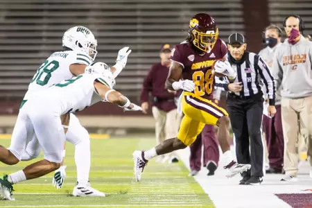 2020: Named second team All-MAC at wide receiver … named to Phil Steel All-MAC team as both a wide receiver and as a punt returner ... versatile talent led CMU with 26 receptions for 277 yards and two touchdowns … also rushed 16 times for 134 yards and three touchdowns … averaged 8.4 yards per carry … completed 5-of-8 pass attempts for 149 yards and a touchdown … accounted for six touchdowns in total … returned eight punts and two kickoffs for a total of 81 return yards … averaged 82.0 yards per game in all-purpose yardage … carried seven times for 108 yards and three touchdowns, including a season-long run of 65 yards for a score, vs. Western Michigan (11/18) … also caught three passes for 42 yards vs. WMU … caught a season-high seven passes for 66 yards vs. Ball State (12/5) … threw for 64 yards on 3-of-5 passing and caught three passes for 36 yards at Toledo (12/12) … was named to Hornung Award Honor Roll after performances at Toledo (12/12) and vs. Western Michigan (11/18).