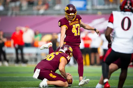 Concludes two-year career at Central Michigan with 124 points, 23-32 on field goals, and 55-59 on point after attempts … concludes career ranked among school’s career record holders in a variety of statistics: No. 17 in point after attempts kicks made (55), No. 11 in field goals made (23), and No. 5 in field goal percentage (71.8 percent, 23-32) … concludes career ranked among the school’s season record holders in a variety of statistics: No. 4 in field goals made (16) and set the school record in season field goal percentage (88.9, 16-18) … holds the record for longest field goal in school history and longest field goal in Kelly/Shorts Stadium history, a 58-yarder vs. Akron on Oct. 14, 2023 … kicked three game-winning field goals.
