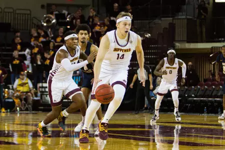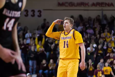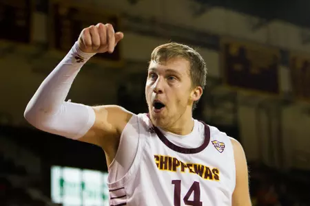 2017-18: Started all 36 games ... led the team in minutes played (33.6 mpg) and rebounding (10th in the MAC, 6.6 rpg) ... led the MAC in 3-pointers made with 96, which ranked third in CMU record book for a single season ... finished third on the team in scoring (12.4 ppg) and steals (34) ... scored in double figures in 21 games, including six with 20-plus points ... led CMU in scoring in eight games ... recorded a team-high nine rebounds at Michigan (11/13) ... scored 28 points against Eureka, making a season-high eight 3-pointers ... averaged 7.7 rebounds per game at the Great Alaska Shootout ... established career highs in points (29) and rebounds (15) in road win at UMKC (12/19) ... named MAC West Player of the Week (12/24) ... scored 25 points on 70% shooting from 3-point range (7-of-10) versus Lawrence Tech (12/29) ... notched his fourth career double-double vs. Kent State (11 points, 11 rebounds) (1/27) ... recorded back-to-back double-doubles by following up with 17 points and 11 rebounds versus Northern Illinois (1/30) ... reached double digits in rebounds in three consecutive games with 14 at Ohio (2/3) ... led CMU in scoring with 22 points in CIT games at Wofford (3/16) and Liberty (3/24).