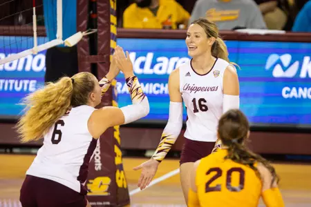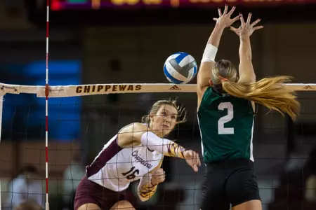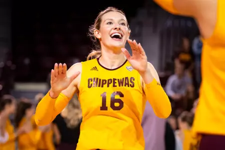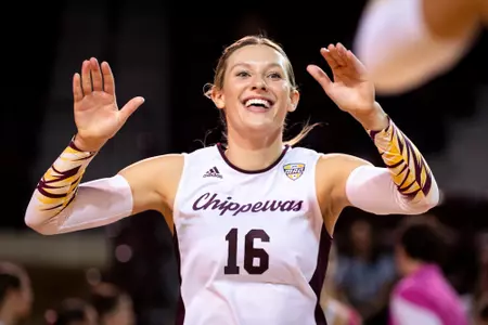 2024: Started her Chippewa career on an incredible note playing in 119 sets over 30 matches…tallied 239 kills (2.00/set)…had a season high 16 kills two times against Western Michigan and Buffalo (10/25/24)…hit .667 against WMU with 16 kills (10/17/24)…totaled a .330 hitting percentage in her freshman campaign…earned All-Tournament Team at the SUNY – UAlbany Tournament (9/7/24)…named Second Team All-MAC…earned a spot on the MAC All-Freshman Team.