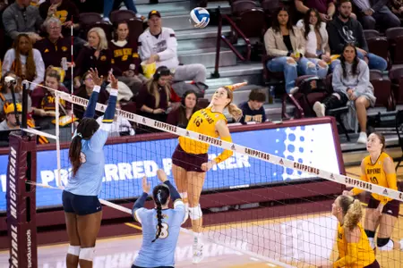 High School/Personal: A four-year letter winner at Dublin Coffman High School…named first-team All Ohio Central Conference (OCC) all-around player, and outside hitter in 2023…earned OCC MVP in the 2024 season…earned the Shamrock Award in 2023 as an outside hitter from the OCC…named first team honorable mention in 2023 as an outside hitter by the OCC…a 2023 Division 1 district champion in 2023…graduated as the valedictorian in 2024…two-year member of NHS…earned Student of Excellence award from Dublin Coffman in 2024 and the Superstar Shamrock Athletic Award in 2022 and 2023…played club for Mintonette Sports in Polaris, Ohio…earned Mintonette Sports JVA Athleader in 2024…daughter to Erin and Ed Thomas…has one brother, Ian…plans to study exercise science on a pre physical therapy route.