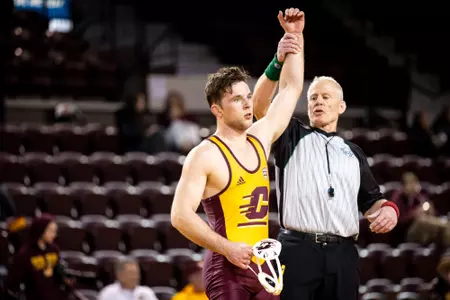 2024-25: Starter at 174 pounds … closed career with a 106-51 record (87-31 at CMU) … one of 28 members of CMU’s 100-Win Club … qualified for NCAA Championships for the fourth time … seeded No. 10 at NCAA Championships and went 0-2 in the tournament … placed second at the MAC Championships, falling on a major decision to Ohio’s Garrett Thompson in the title bout … finished 25-8 including 16-3 in duals, 6-1 in MAC duals … ranked second on the team with 12 bonus-point victories including seven major decisions and five technical falls … placed first in the Michigan State Open (Nov. 9) … finished fourth in the Midlands Championships (Dec. 7) … named by the National Wrestling Coaches Association as a Scholar All-American … College Sports Communicators All-District honoree … earned Academic All-MAC honors … CMU’s male MAC Medal of Excellence recipient.